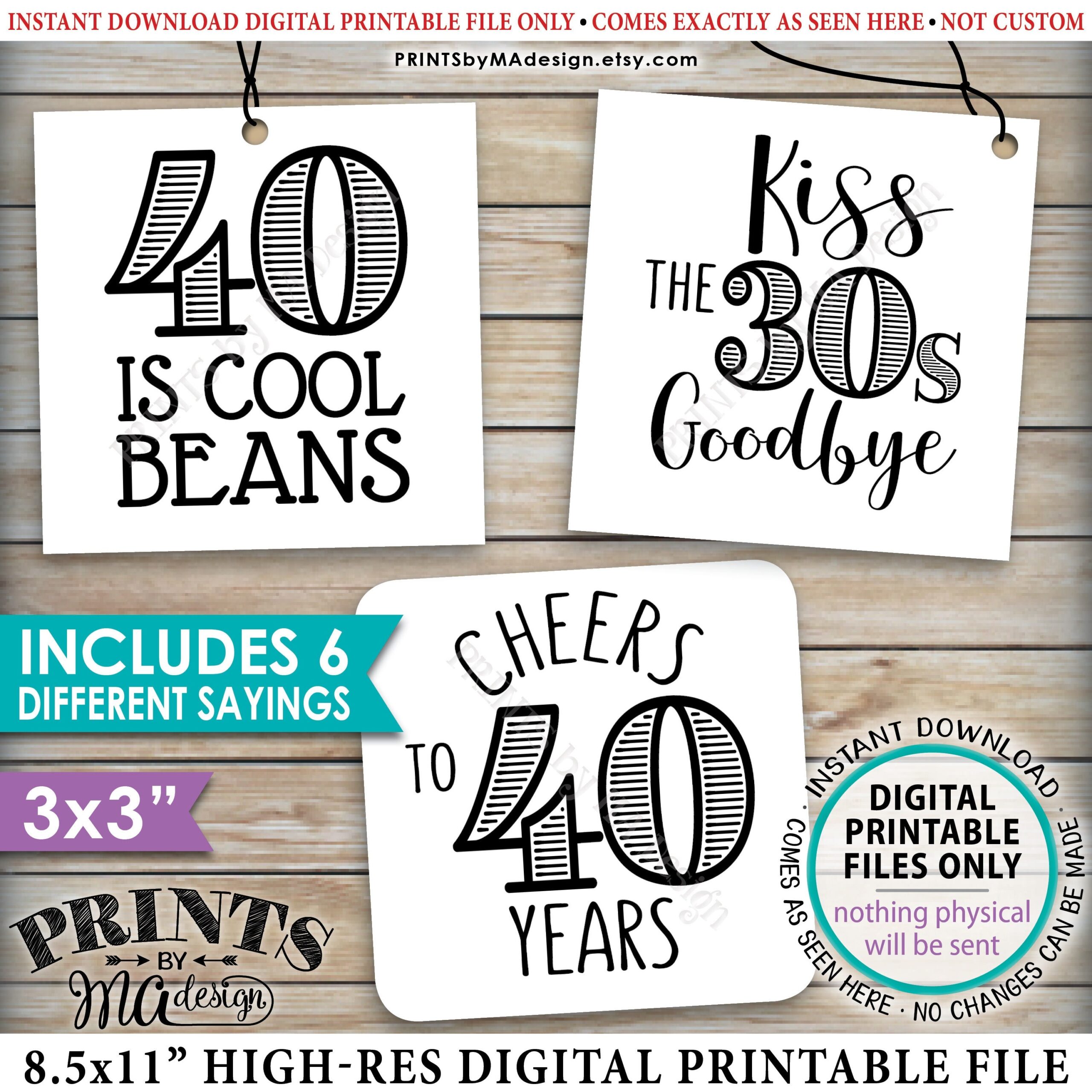 40th Birthday Party Candy Signs Candy Bar 40 Is Cool Beans Blows Rocks Is Hot Kiss 30s Goodbye 3 Tags On PRINTABLE 8 5×11 Sheet