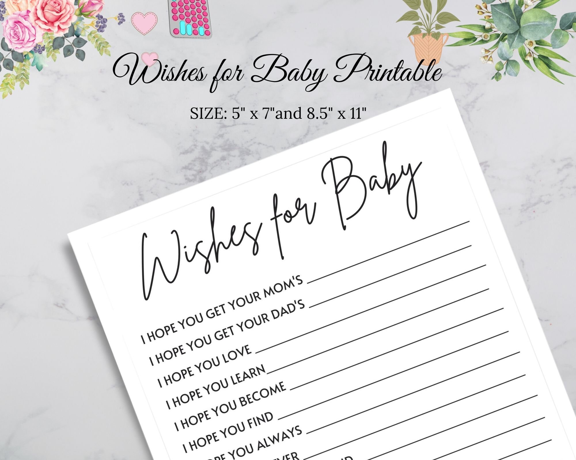 Wishes For Baby Printable Wishes For Baby Card Well Wishes Baby Baby Shower Game Minimalist Instant Download Instant Etsy