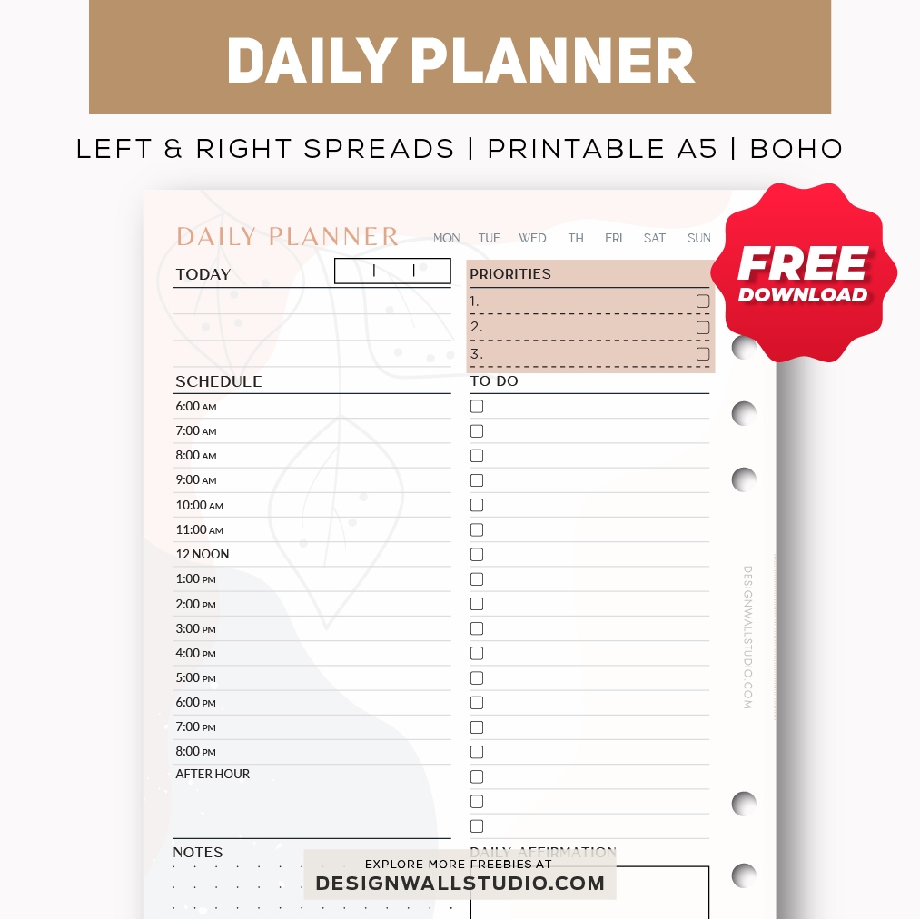 Daily Planner Printable Insert A5 Free PDF Download Two Page Layout 3 Versions