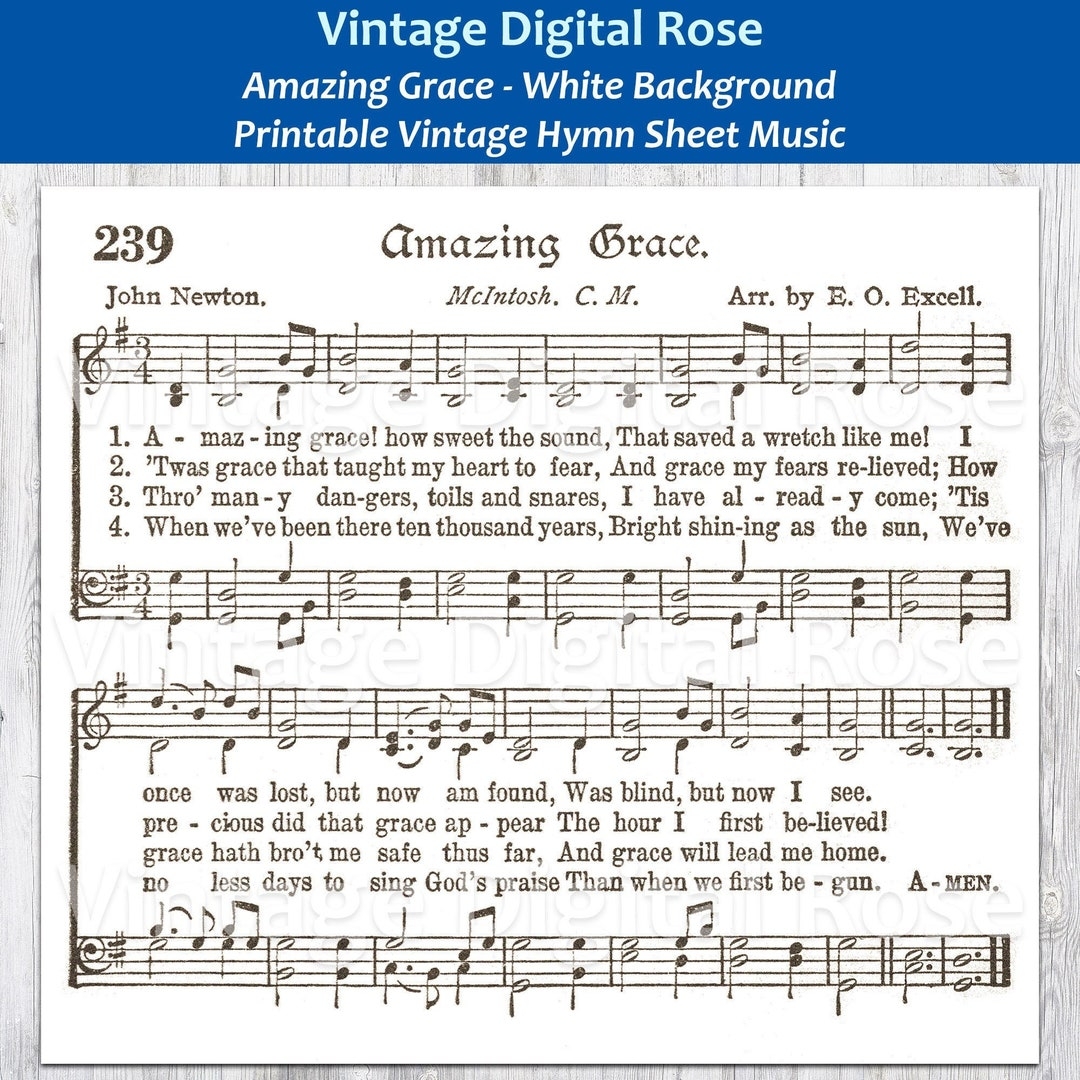 Amazing Grace White Background Printable Vintage Hymn Sheet Music Etsy