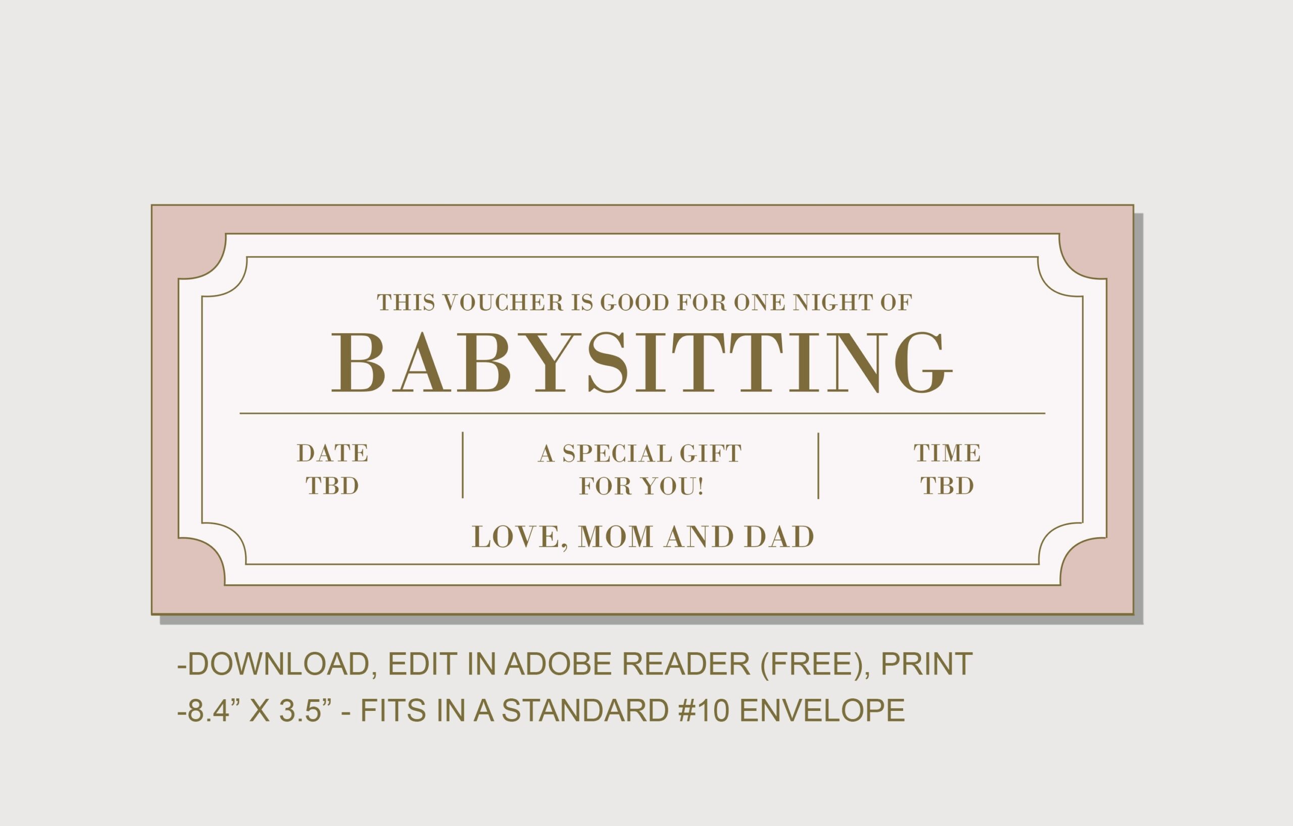 Babysitting Coupon Voucher INSTANT DOWNLOAD EDITABLE Text