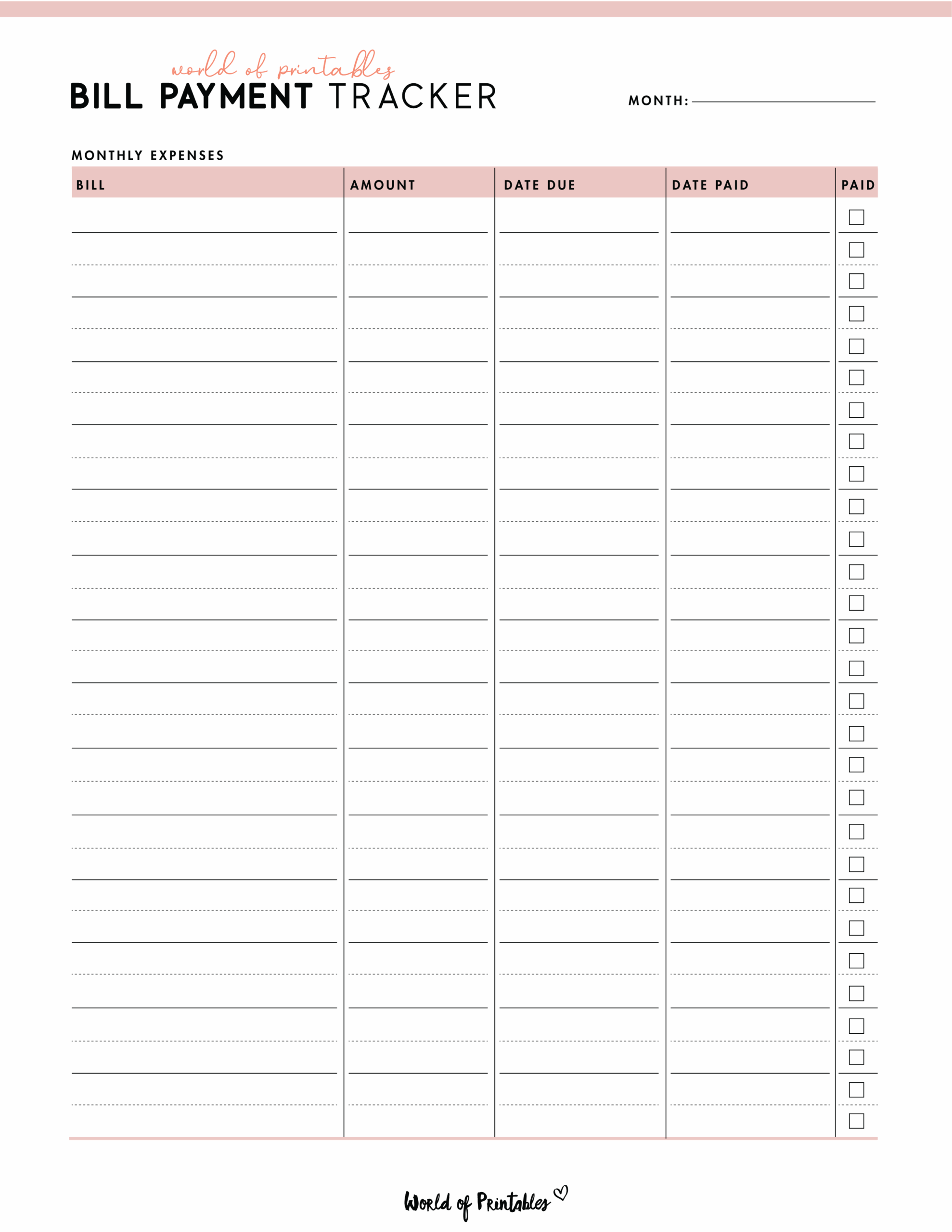 FREE Printable Bill Tracker PDF World Of Printables
