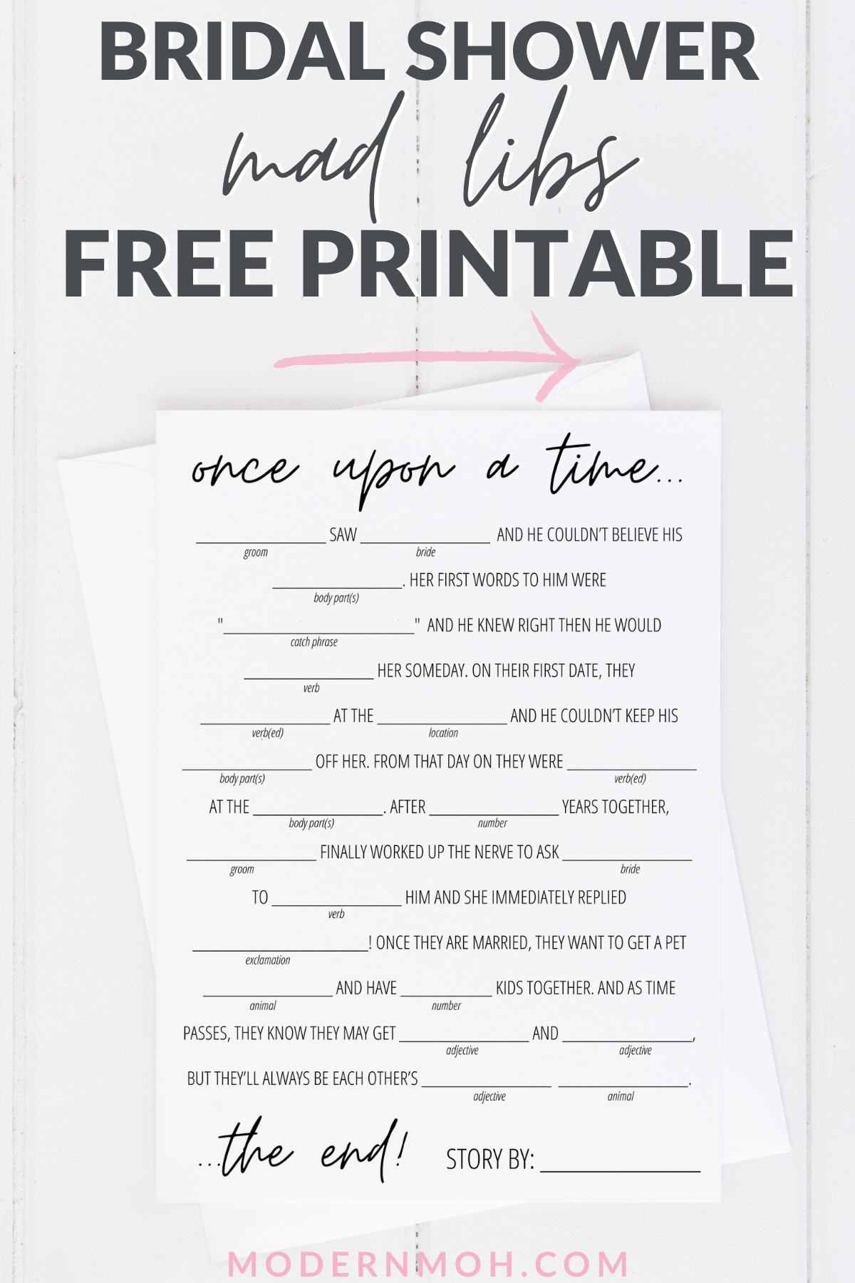 Bridal Shower Mad Libs Free Printable Modern MOH