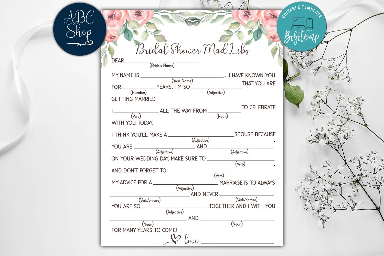 Bridal Shower Mad Libs Floral Bridal Mad Libs Mad Libs Bride Advice Pink Wedding Shower Game Madlibs Funny Bridal Shower Games P18 Etsy