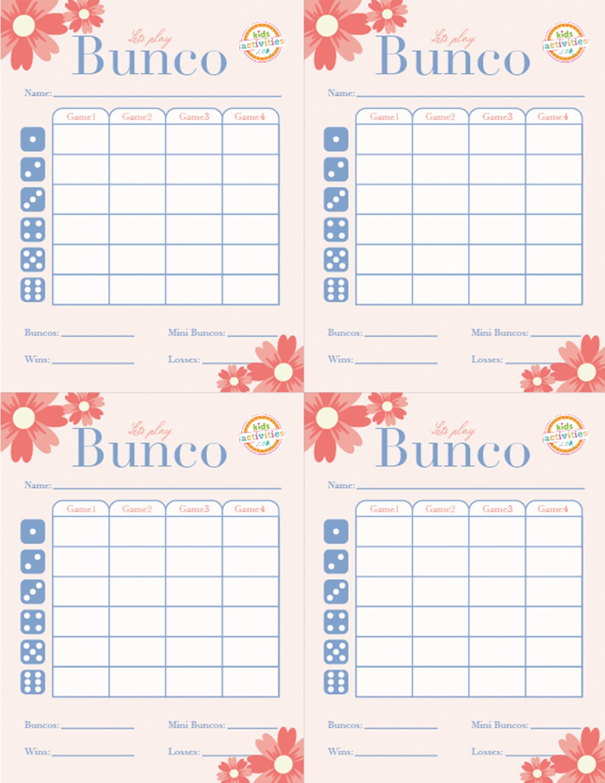 Bunco Score Sheet Free Printable
