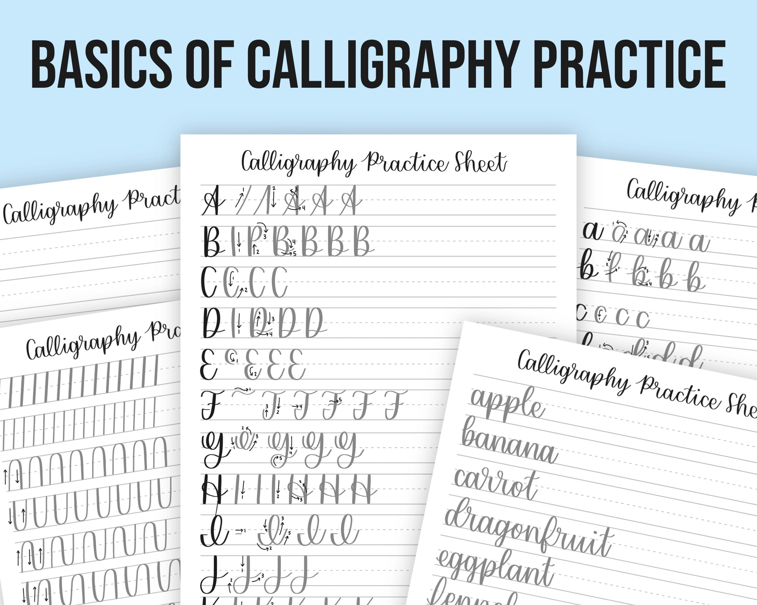Basics Of Calligraphy Practice Sheet Templates Calligraphy Printable IPad Procreate Calligraphy Etsy