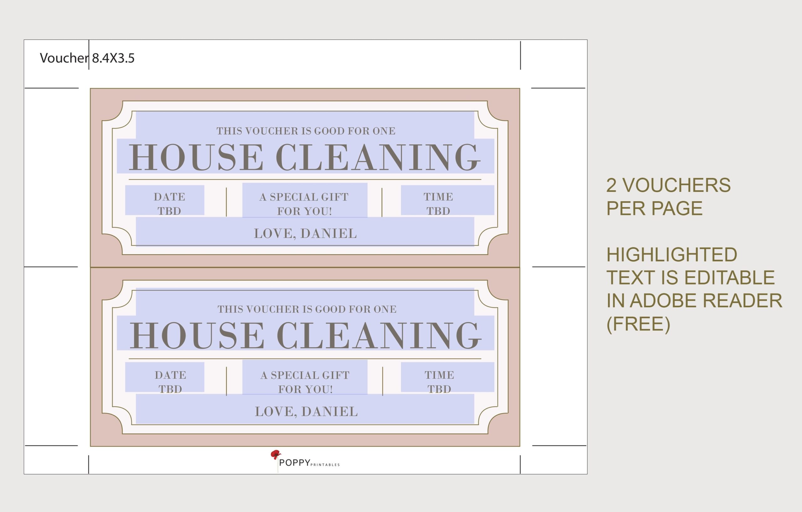 House Cleaning Coupon Voucher INSTANT DOWNLOAD EDITABLE Text Printable Personalized Certificate Birthday Anniversary New Baby Etsy