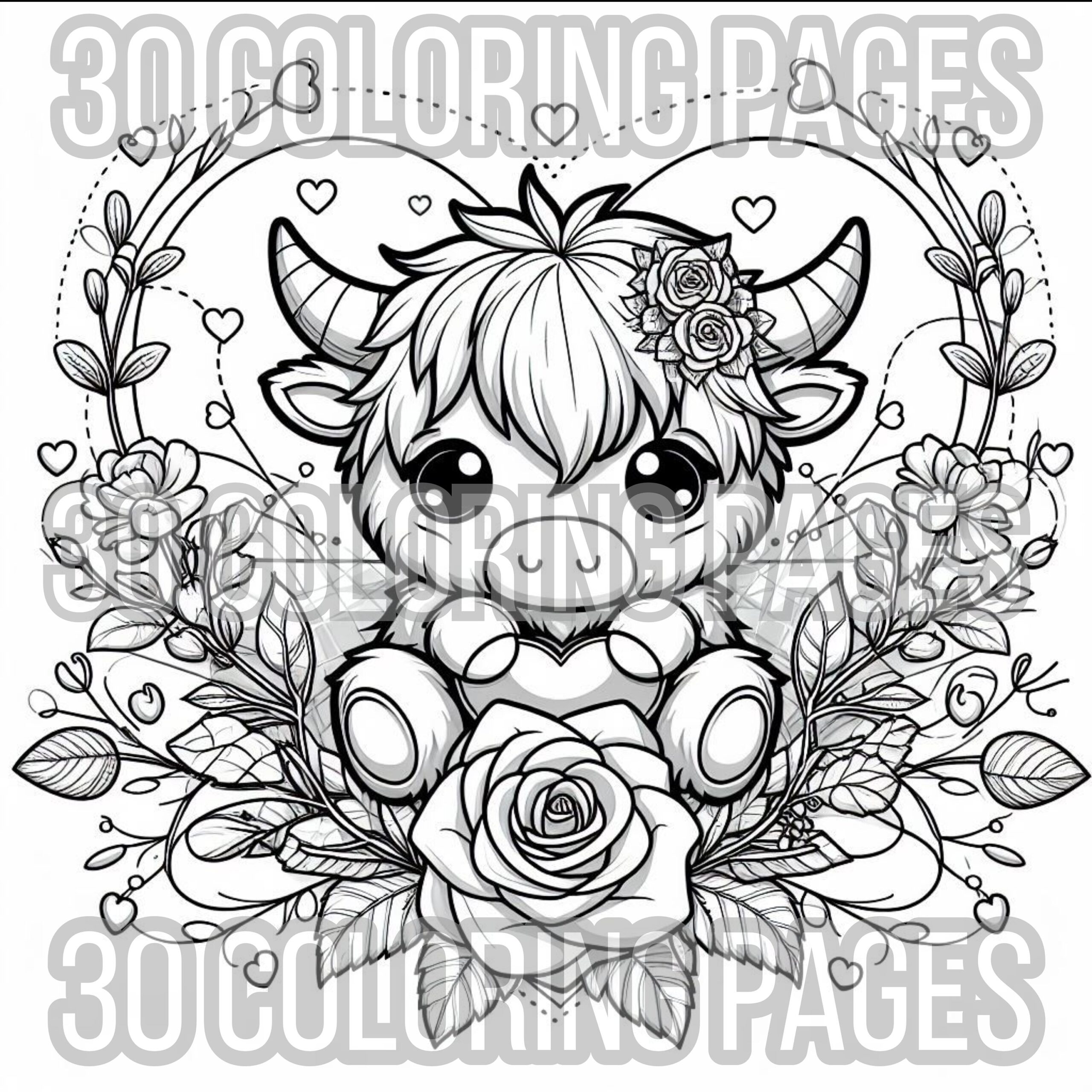 30 Cute Highland Cow Coloring Page Valentines Coloring Sheet