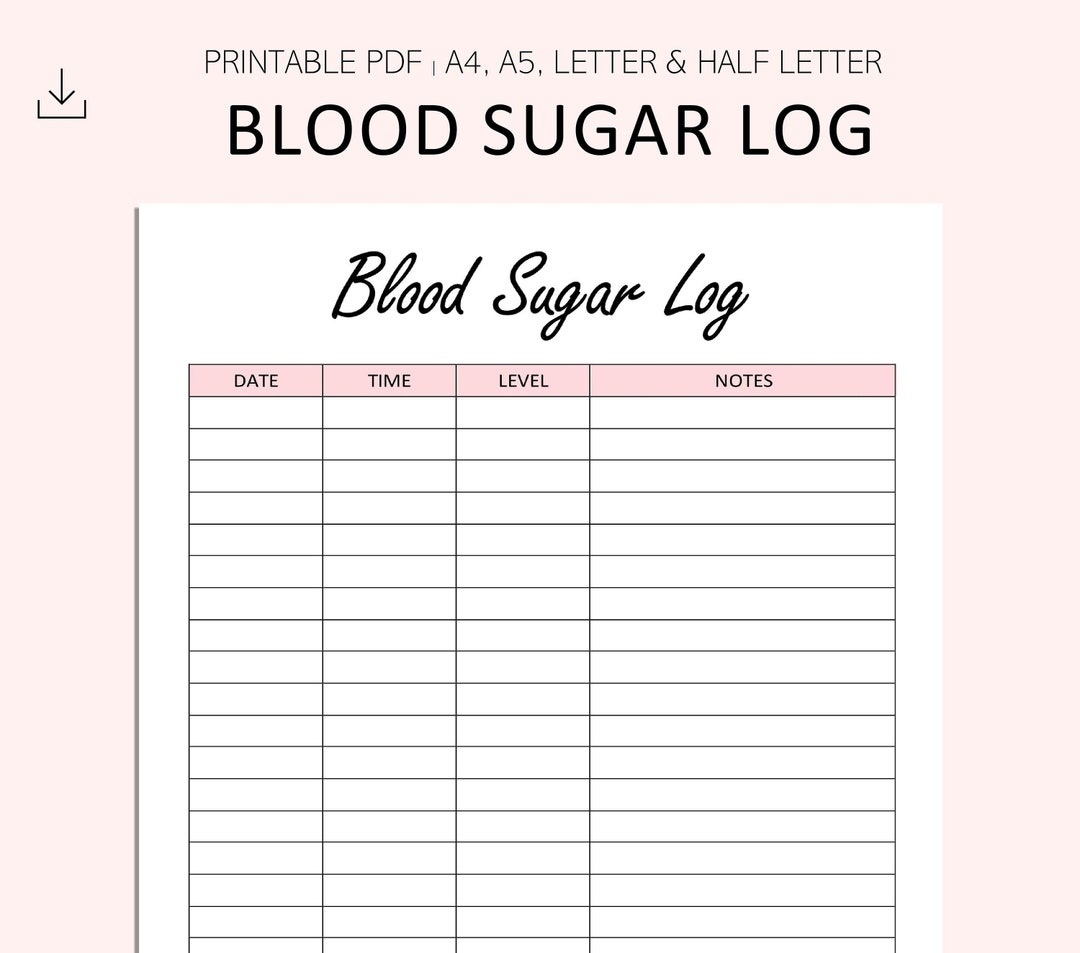 Simple Downloadable Blood Sugar Log Sheet Instant Download Etsy
