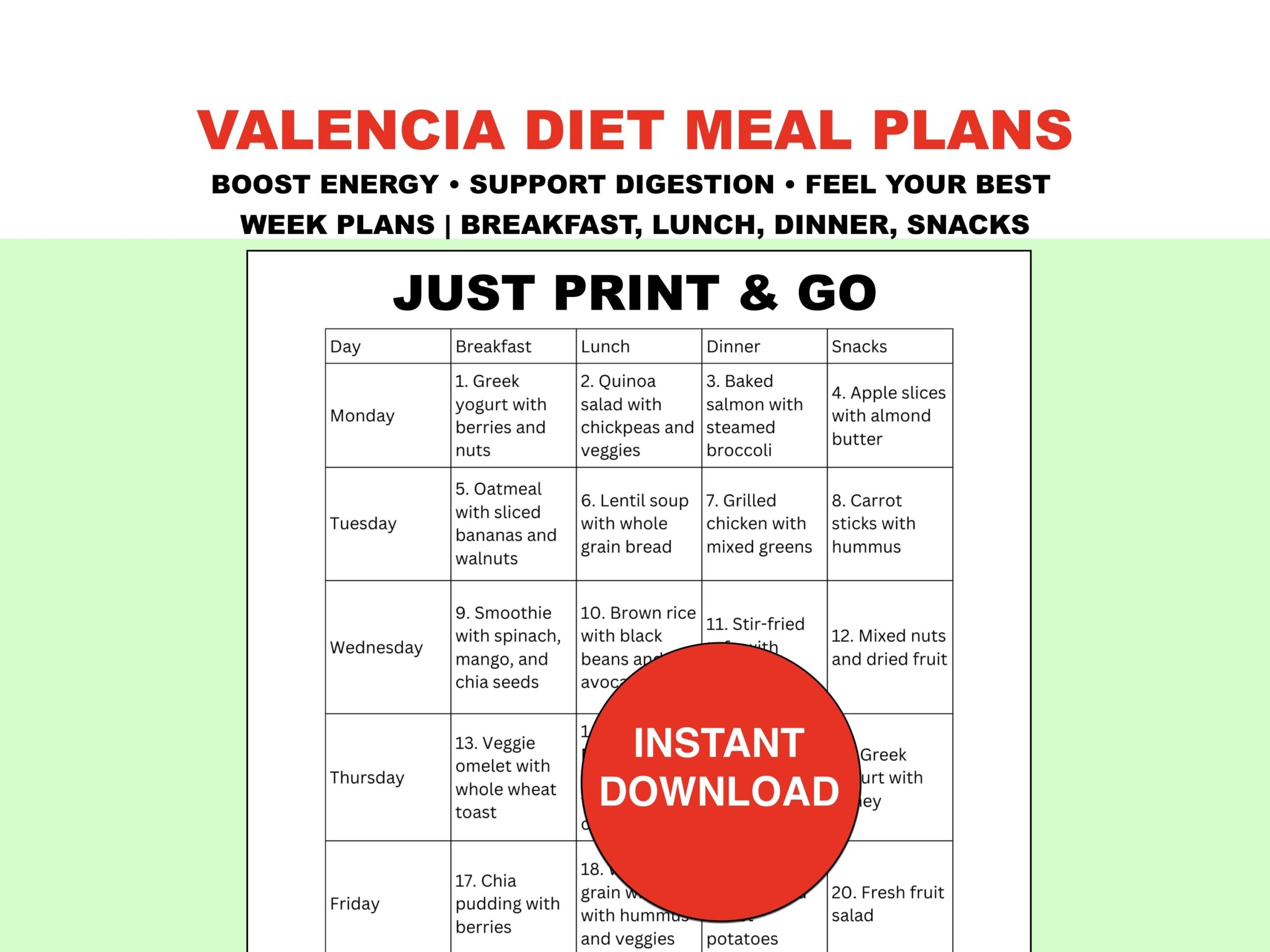 Valencia Diet Meal Plan PDF 30 Days Breakfast Lunch Dinner Snacks 7 Day Diet Plan Etsy