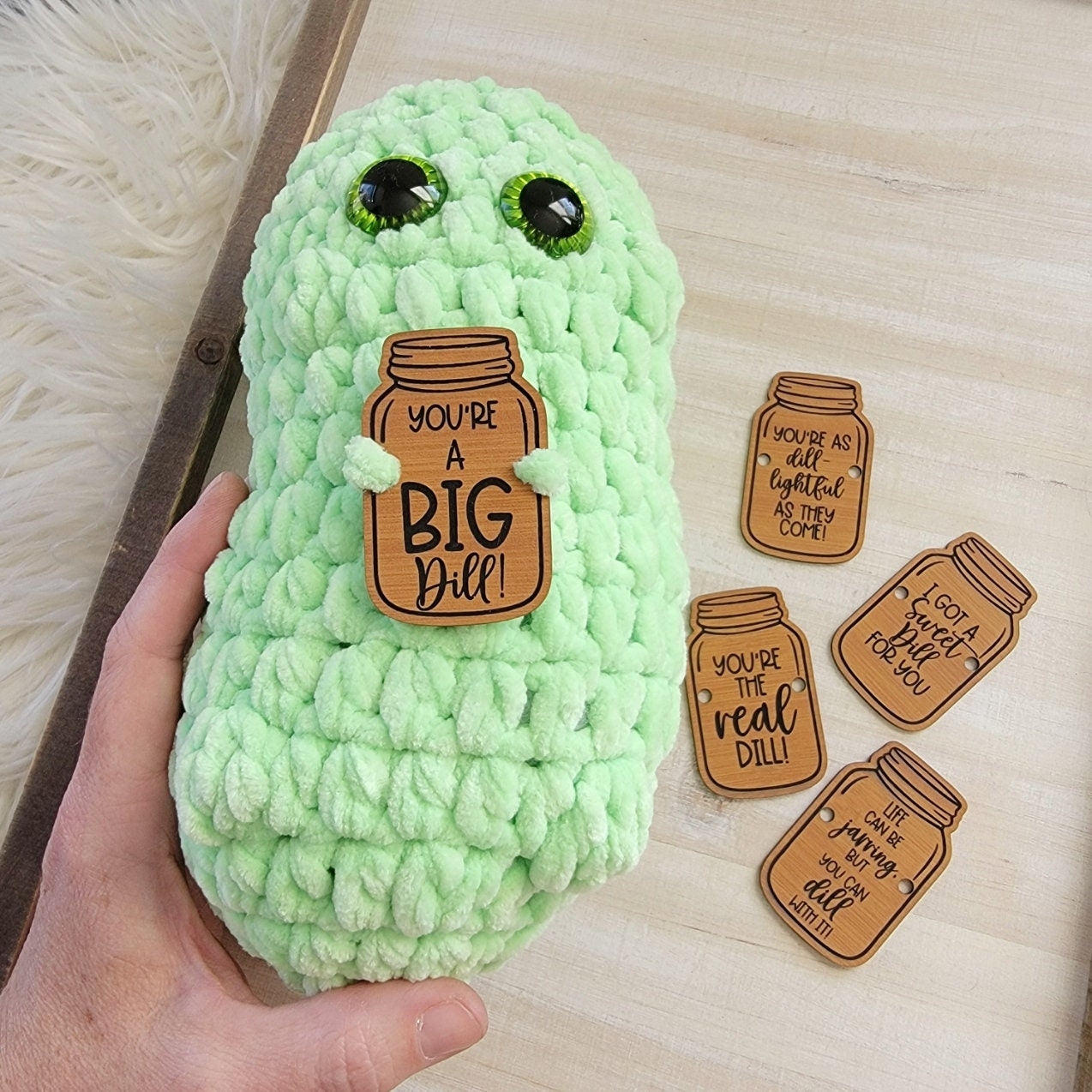 Chunky Pickle Tags Crochet Amigurumi Emotional Support Pickle Tags Set Of 5 Or 7 Punny Pick Me Up Pickle Patches Faux Leather Ready To Ship