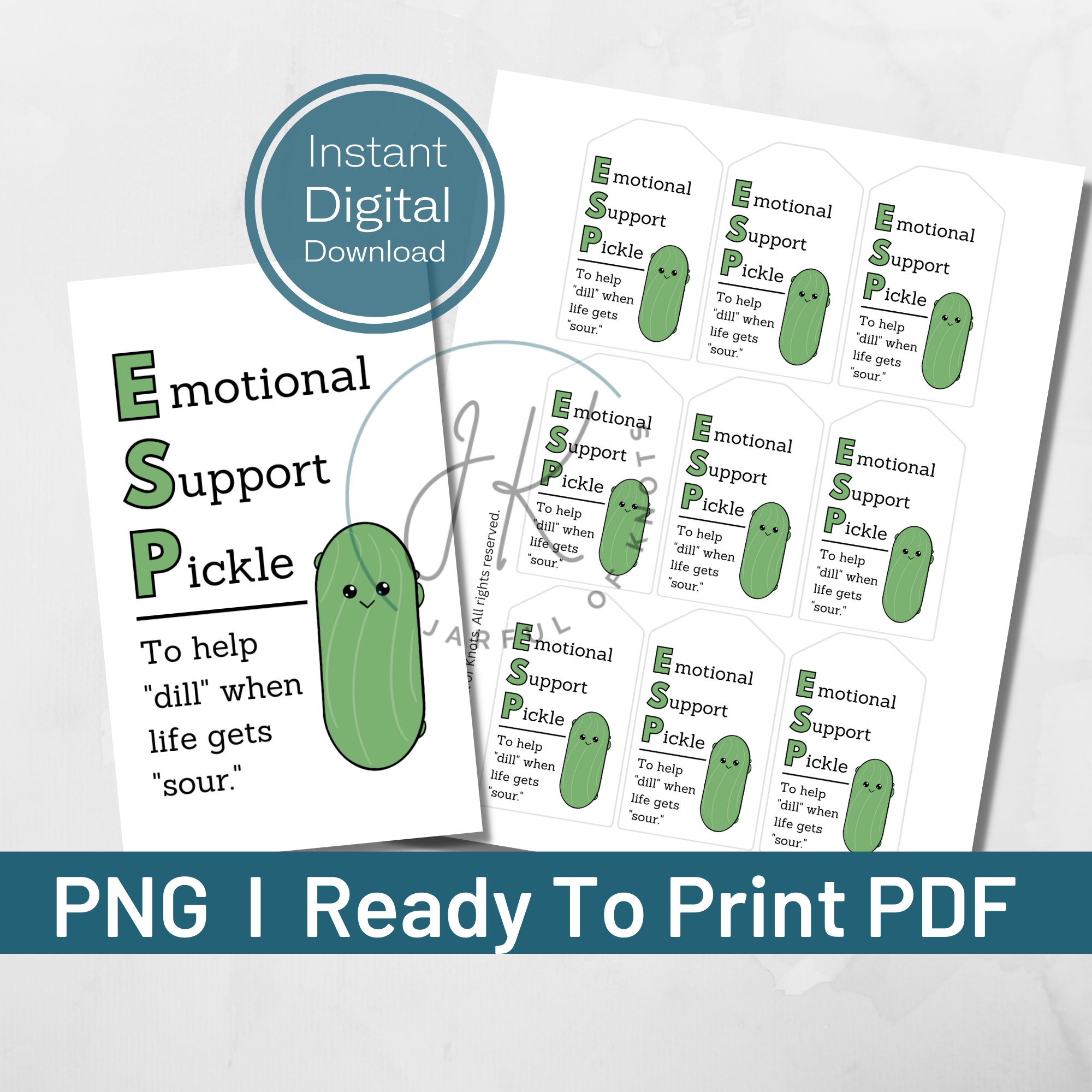 Digital Download Emotional Support Pickle Printable Tag PDF PNG Crochet Plush Tag Crochet Plush Display Tag Pickle Pun Card Etsy