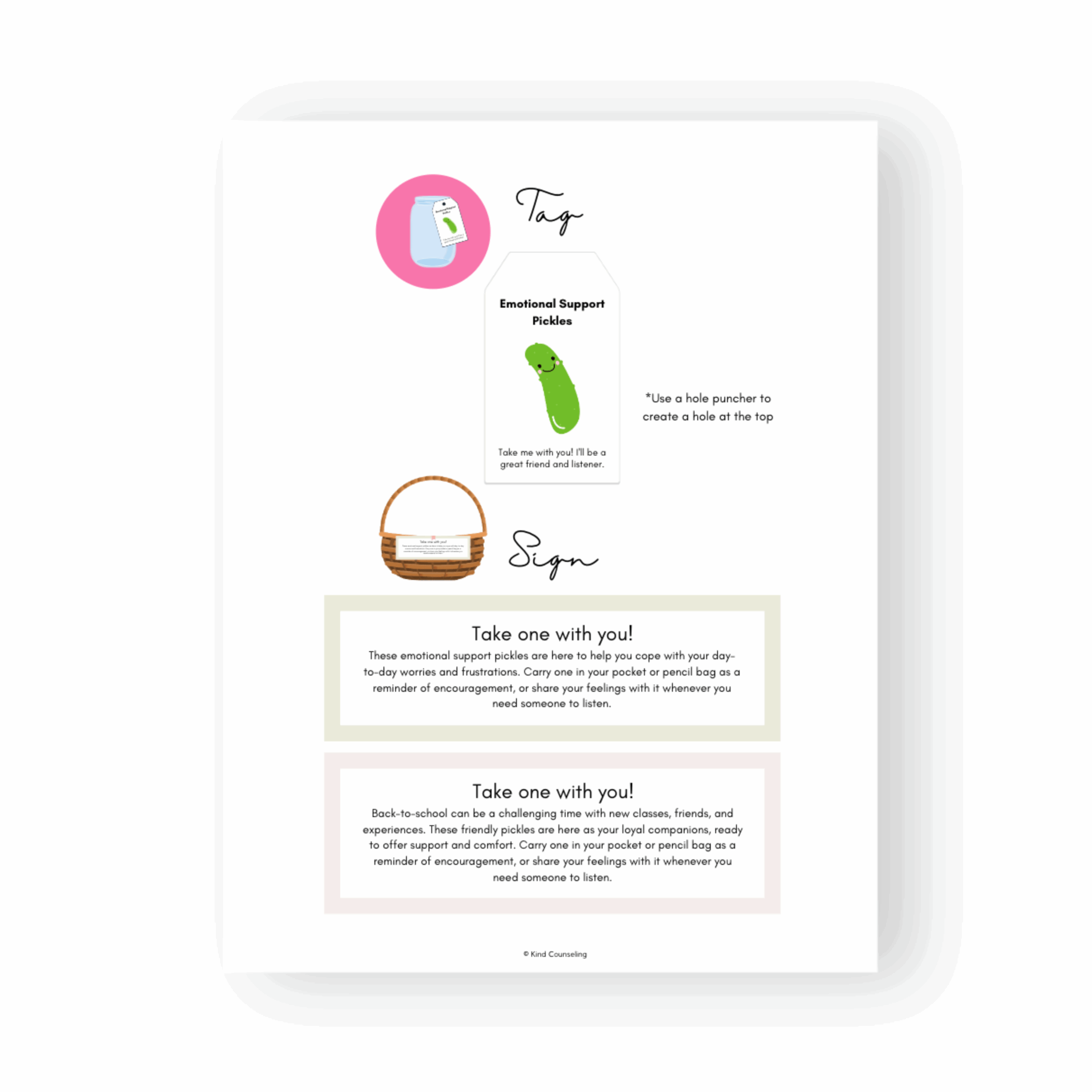 Emotional Support Pocket Pickles Printable Back To School Counseling Anxiety Coping Skill SEL Made By Teachers