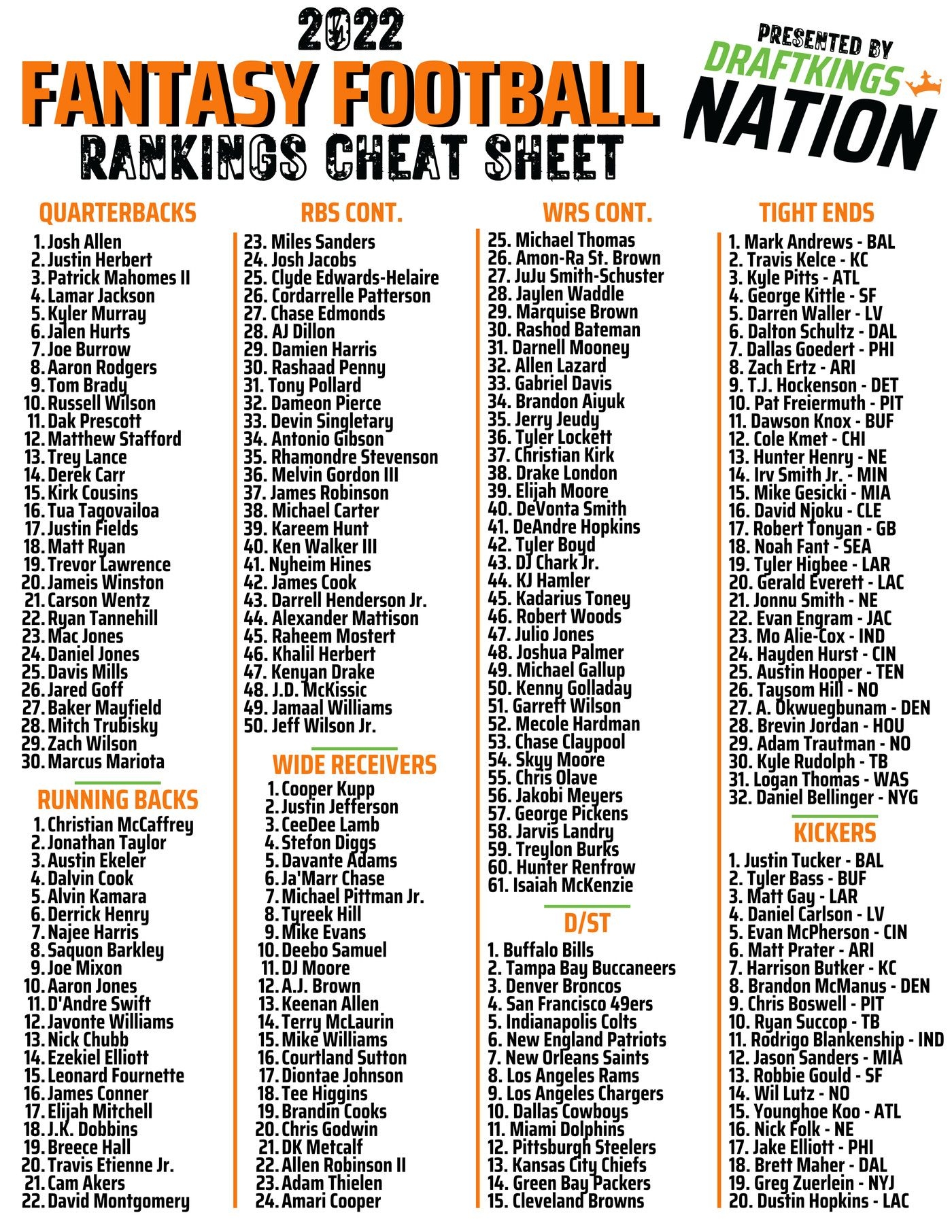 2022 Fantasy Football Cheat Sheet The 33rd Team