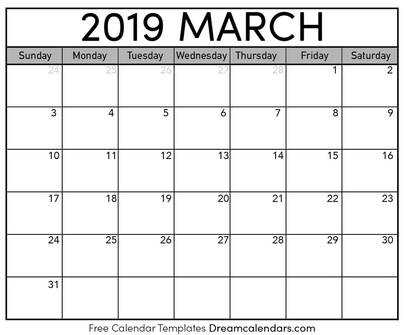 Printable Monthly Calendar 2019 Free calendar template