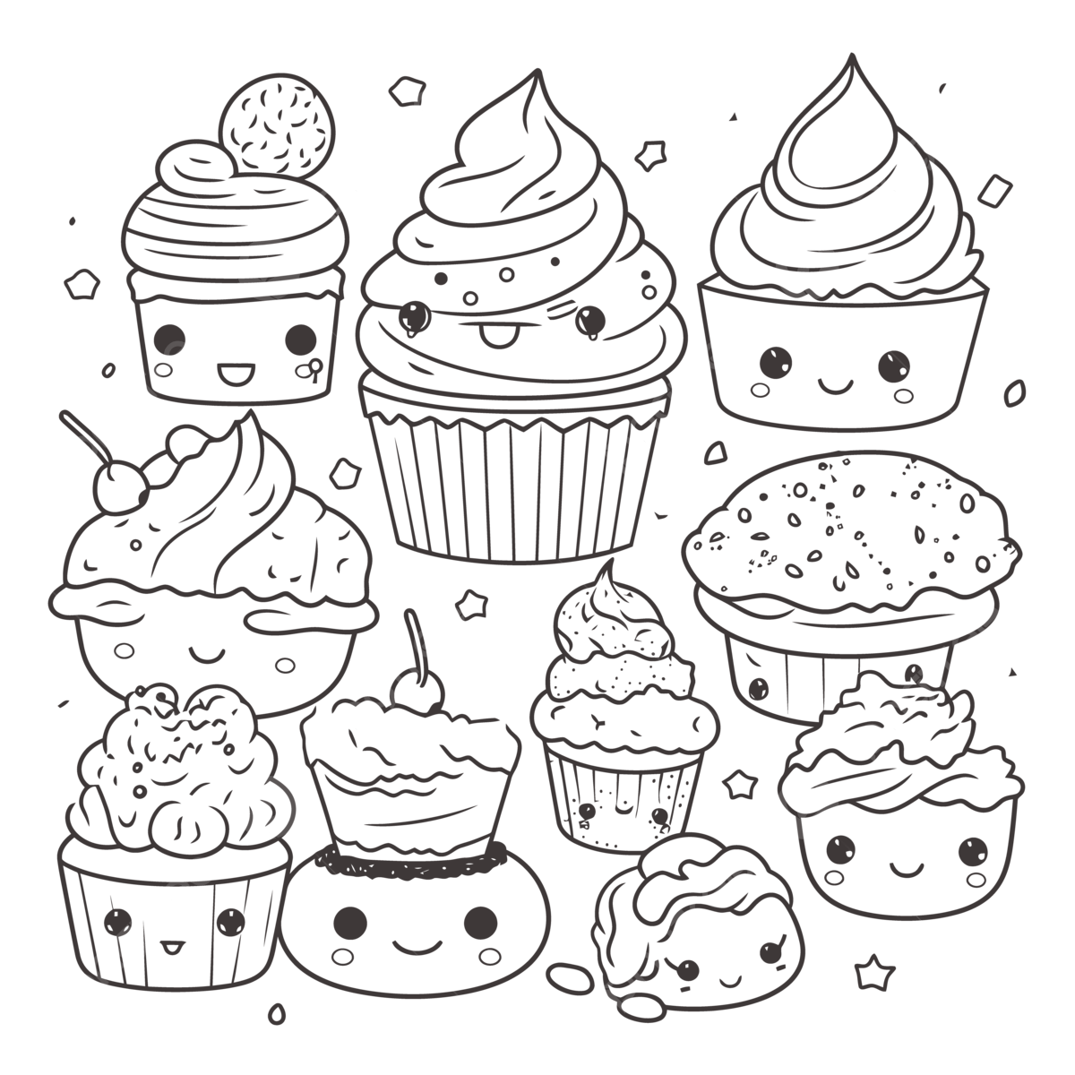 Kawaii Cupcake Coloring Pages Printable Best Outline Sketch