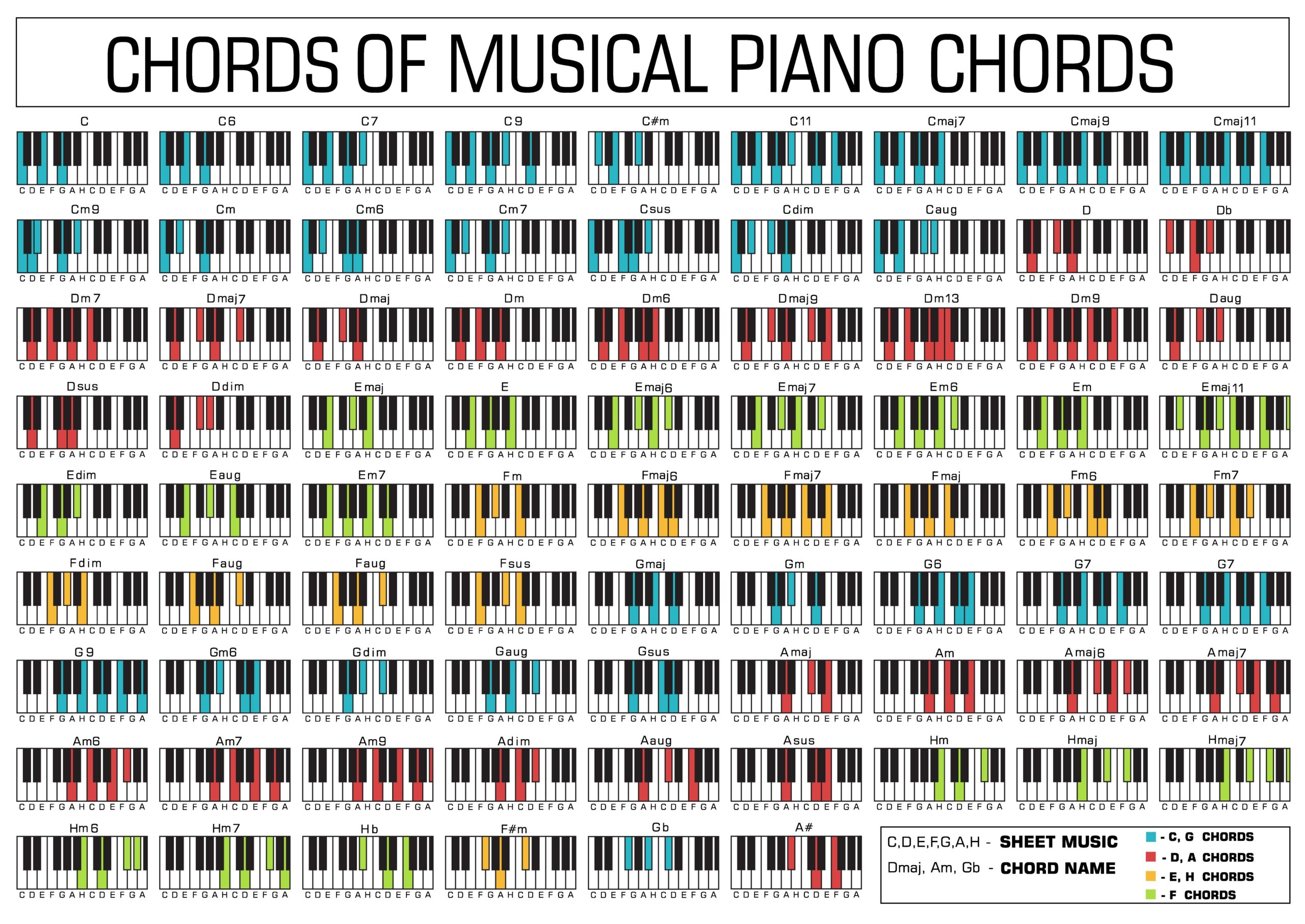 Piano Chords Chart Poster Educational Chart For Pianists Songwriters And Music Producers Etsy
