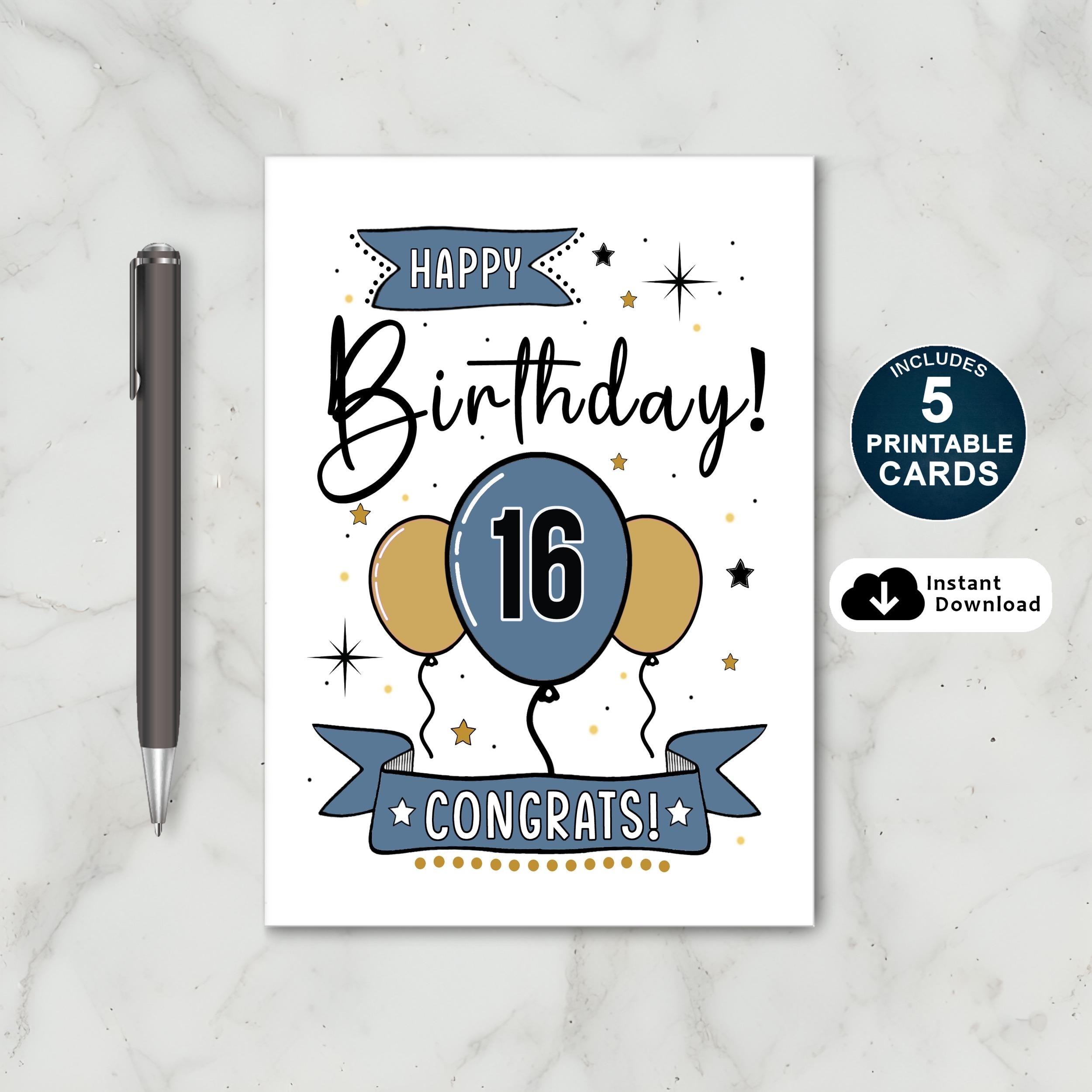 Printable 16th Birthday Card Happy 16th Birthday Card Happy 16th Birthday 16th Birthday Card Happy 16th Birthday Wishes Etsy