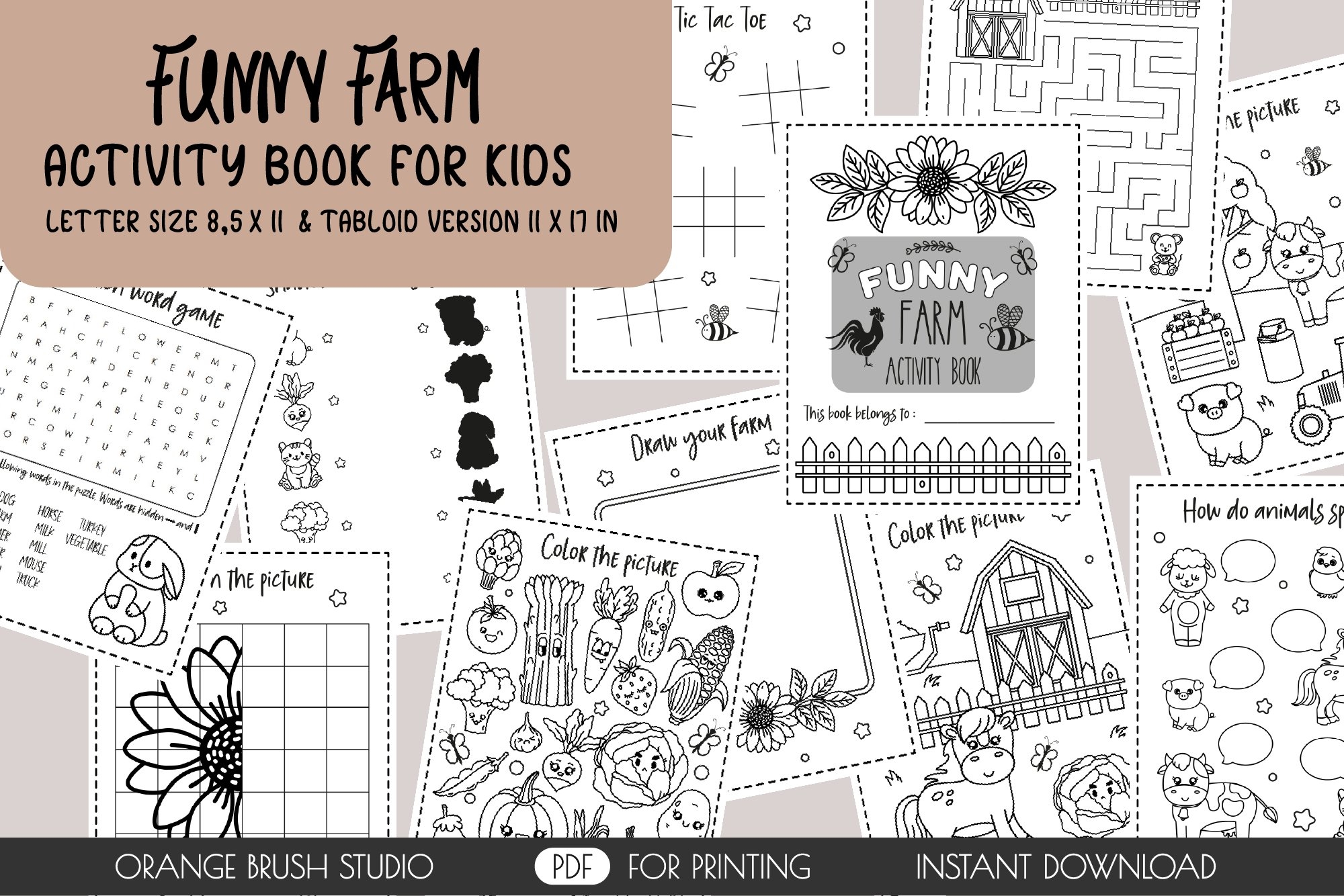 Funny Farm Kids Coloring Pages PDF Activity Book