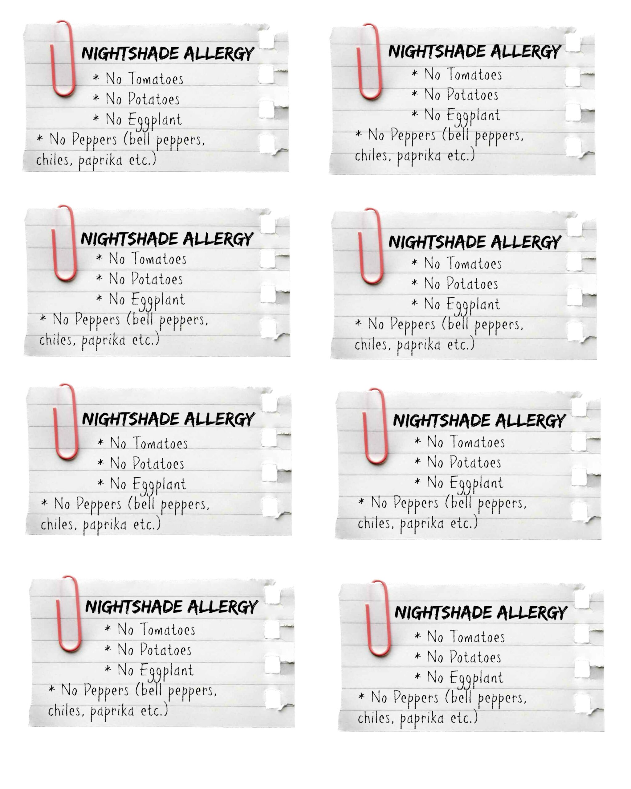 Nightshade Allergy Cards Free Printable PDF Mama Likes To Cook