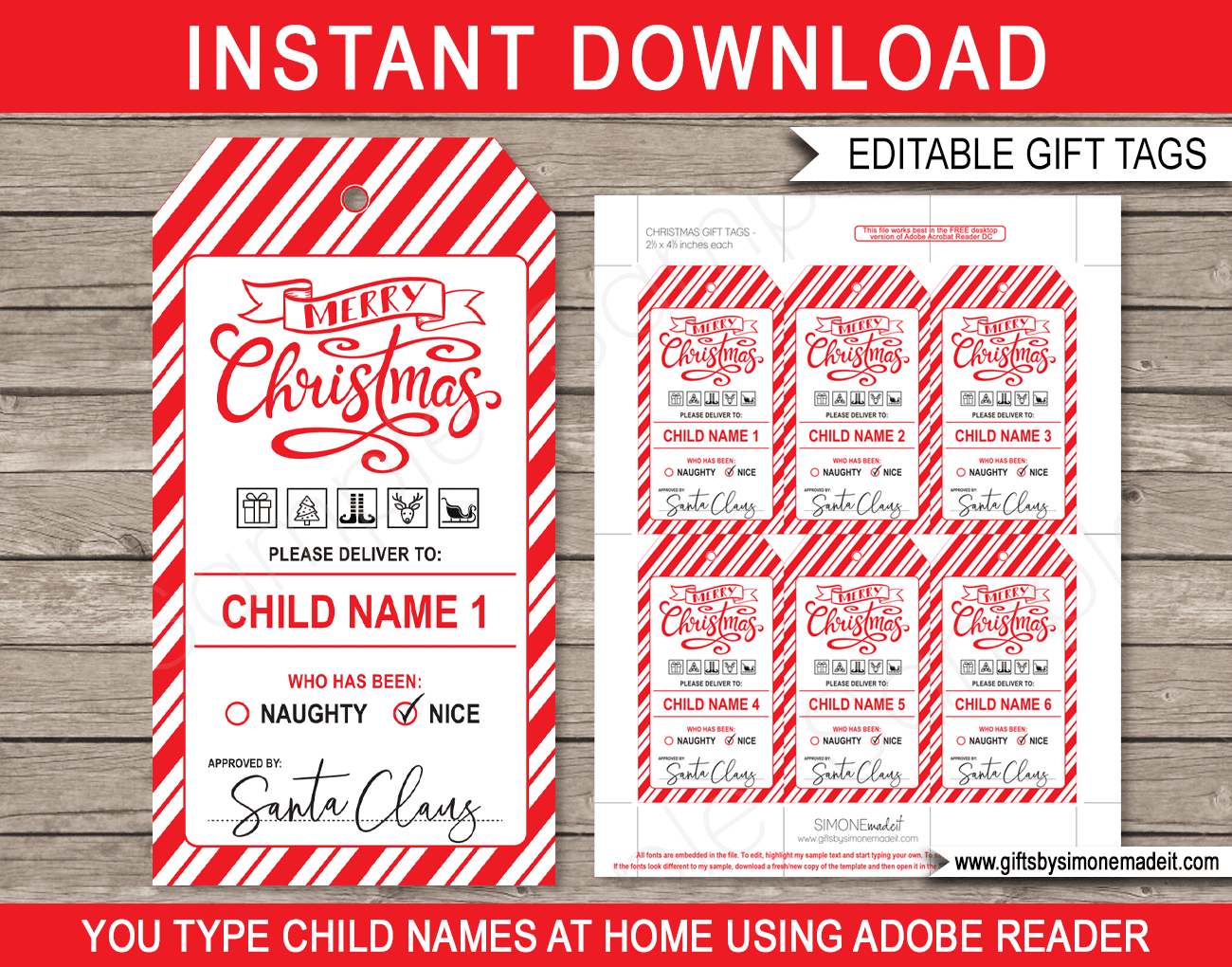 Christmas Gift Tags Red Merry Christmas With Packing Symbols
