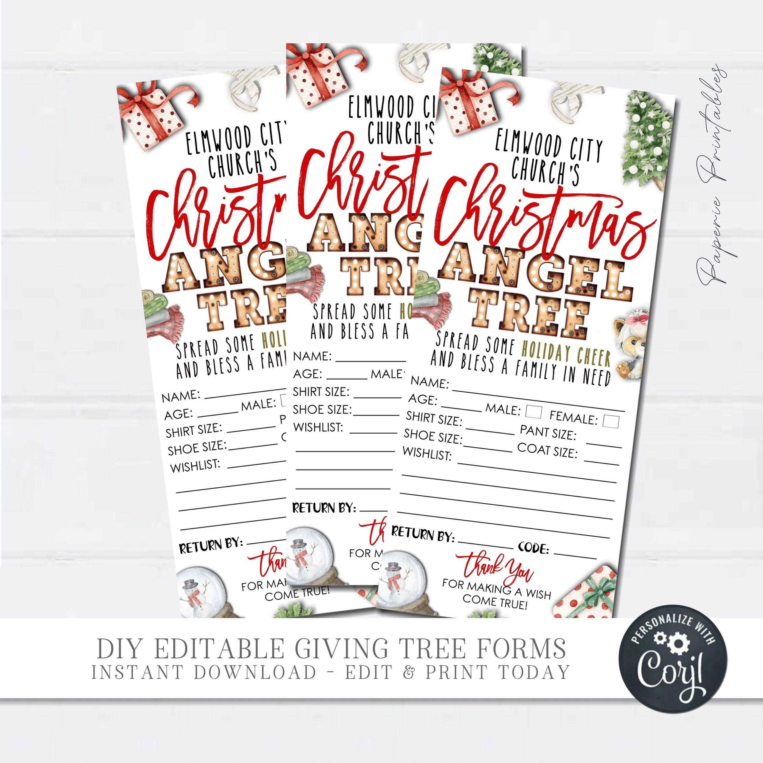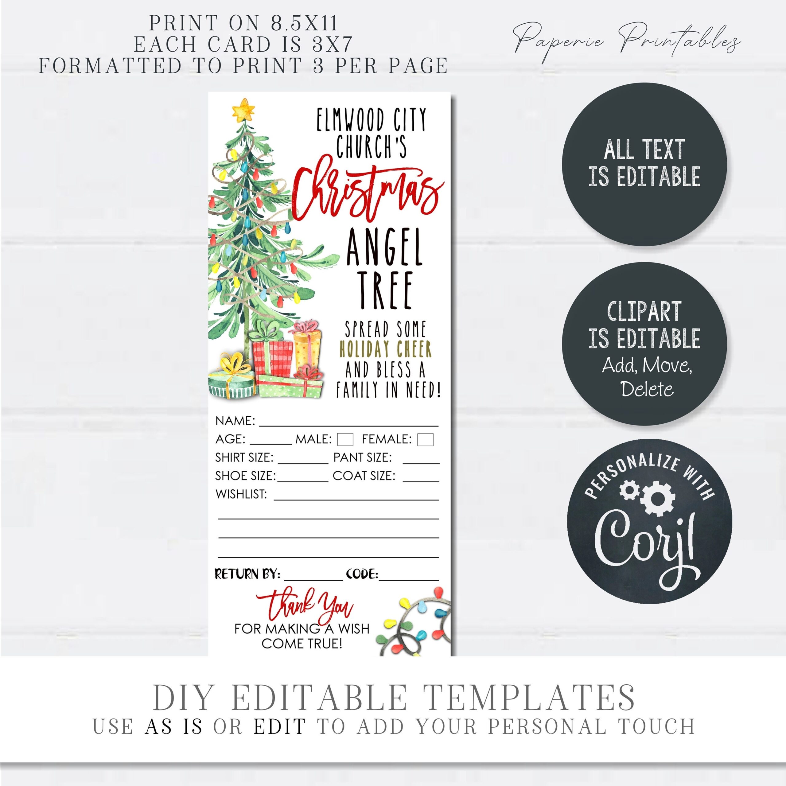 EDITABLE Angel Tree Gift Tags Christmas Angel Tree Fundraiser