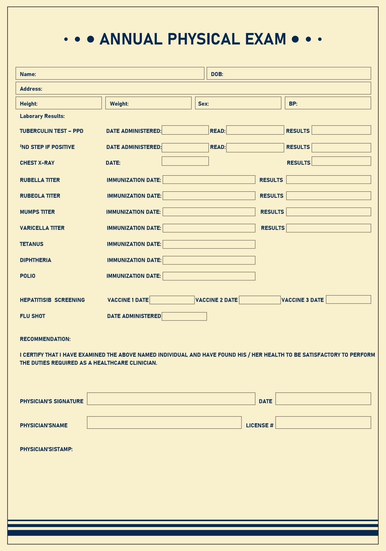 Free Printable Annual Physical Exam Form