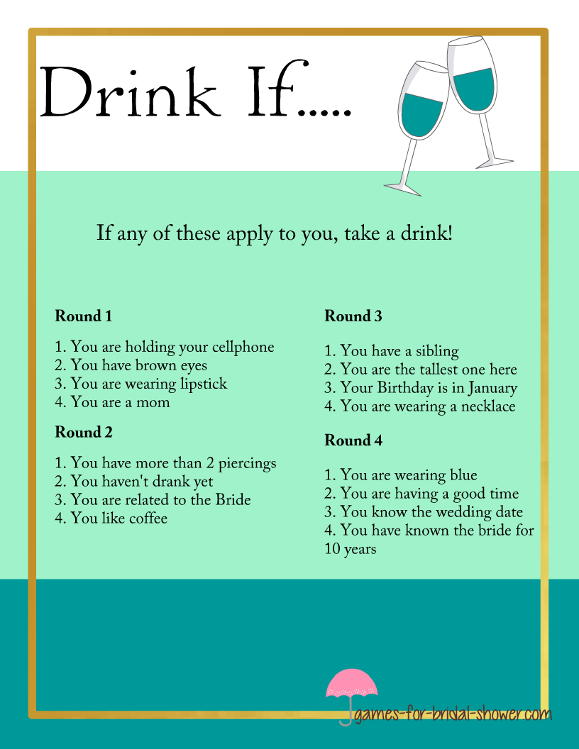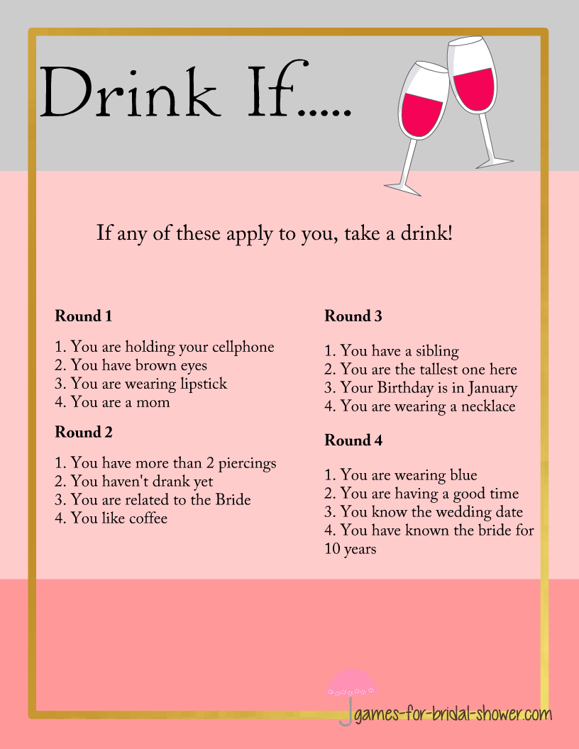 Free Printable Drink If Bridal Shower And Bachelorette Party Game