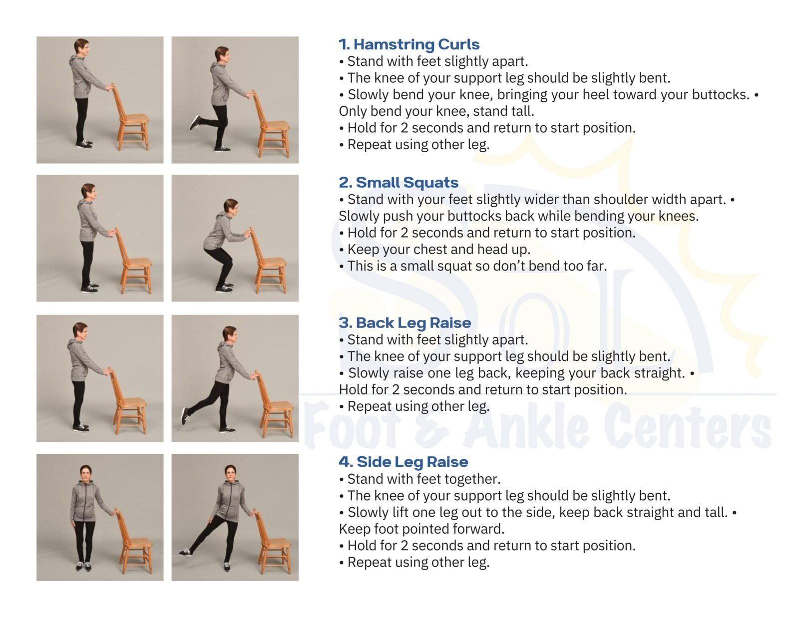 Chair stands are another beneficial exercise. Sit in a sturdy chair and stand up, then sit back down. This exercise helps strengthen the legs and improve balance. Toe taps are also helpful – stand behind a chair and tap your toes out to the side, alternating legs.