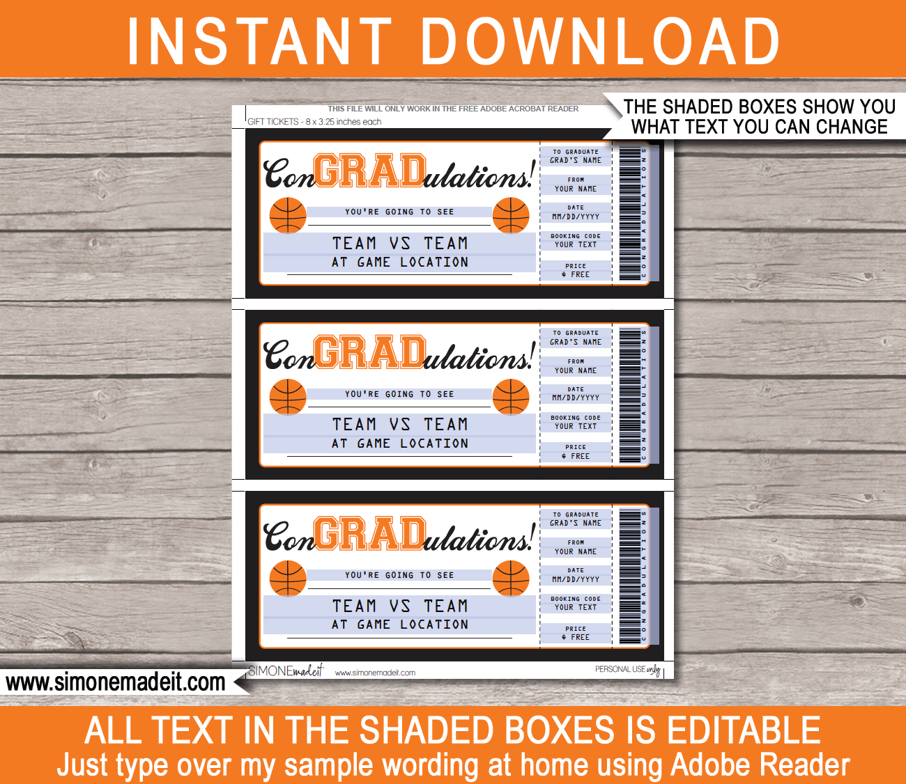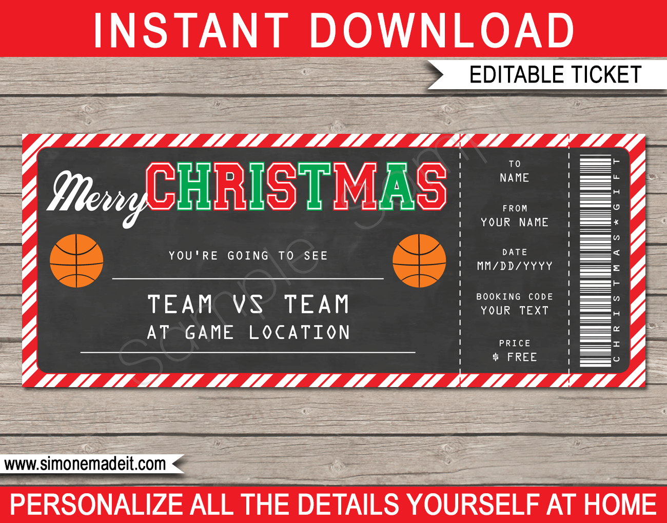 Basketball Game Christmas Gift Ticket Editable Template Christmas Worksheets Library