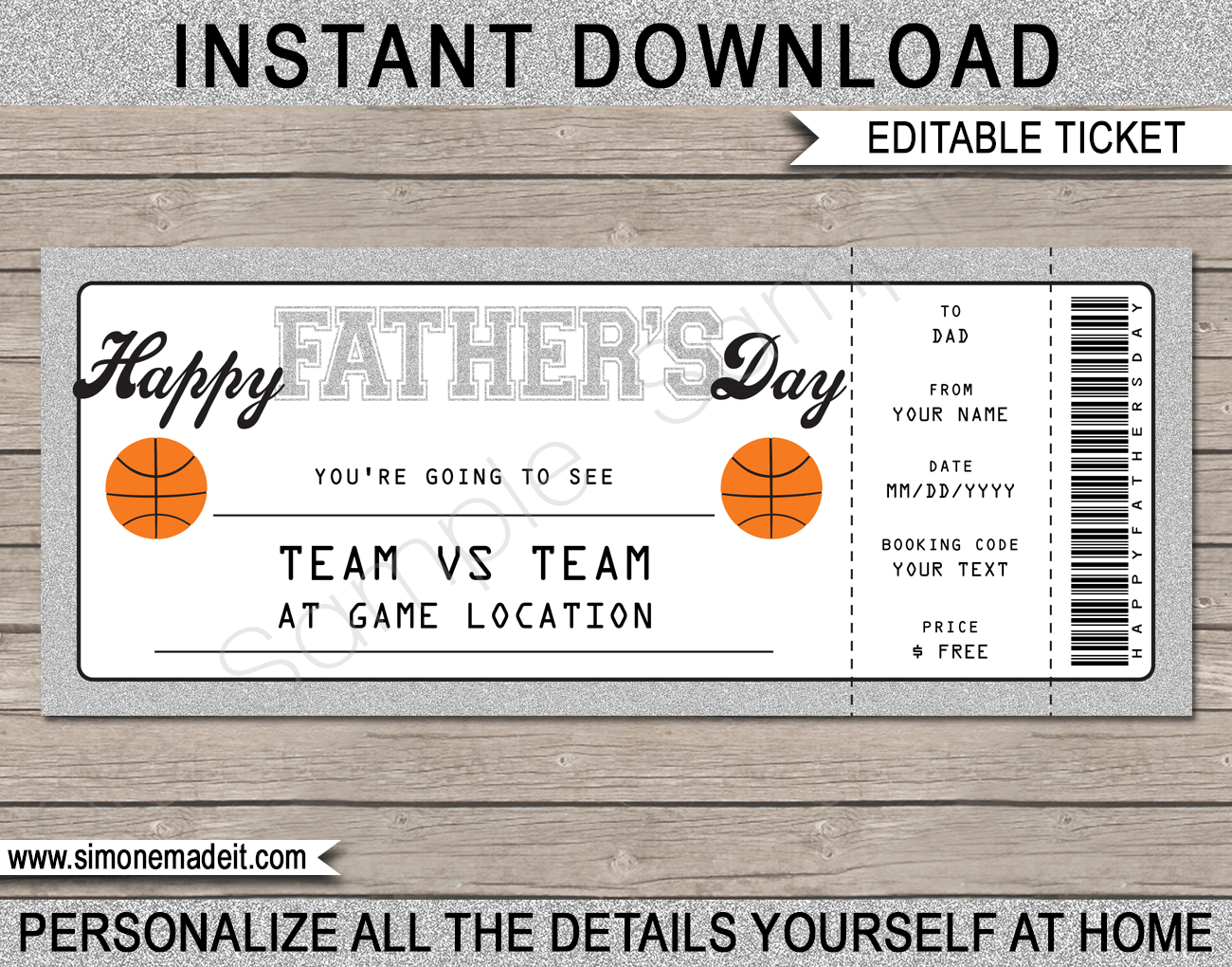 Father s Day Basketball Ticket Gift Voucher Printable Basketball Ticket Template