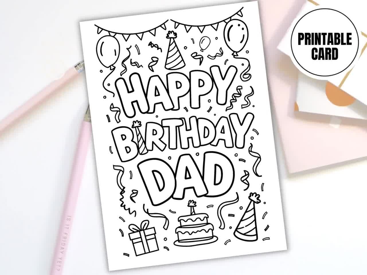 Happy Birthday Dad Printable Coloring Card Digital Download Fun DIY Birthday Card For Dad Father s Day Card Dad Gift Idea