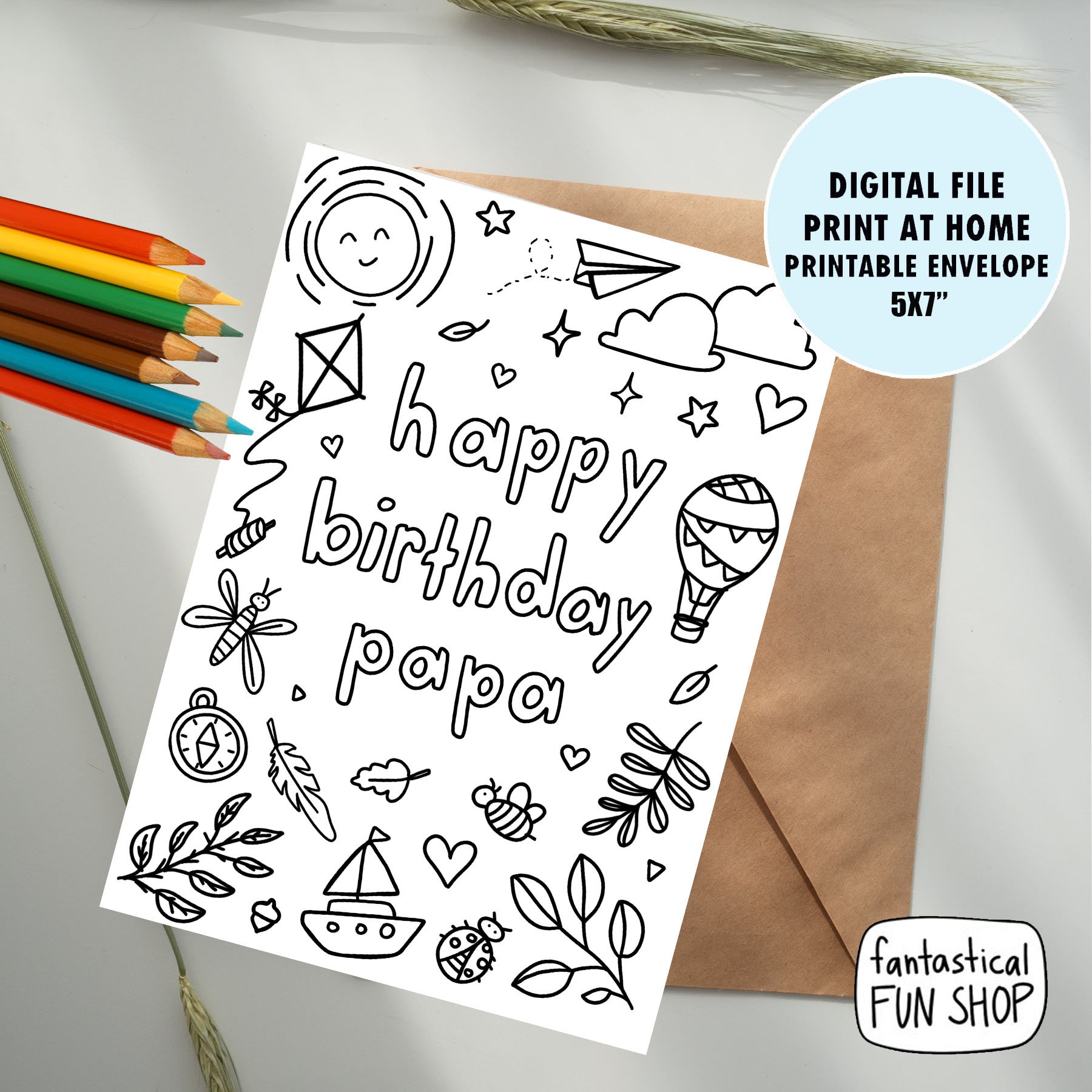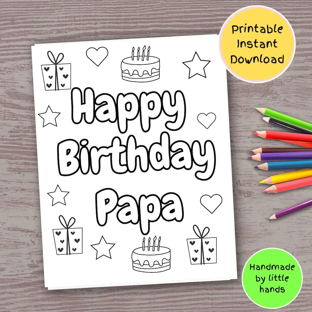 Happy Birthday Papa Printable Coloring Page For Kids Handmade Diy Birthday Card Gift For Papa From Grandkids Grandson Granddaughter To Papa Etsy