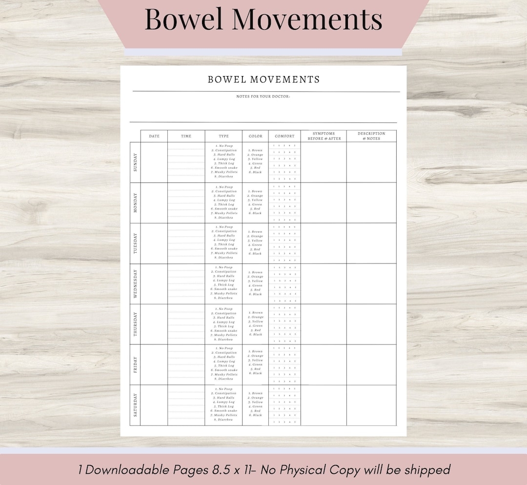 Bowel Movement Tracker IBS Tracker Irritable Bowel Syndrome Printable Sheet Food U0026 Symptoms Tracker Food Sensitivity Journal Poop Chart Etsy