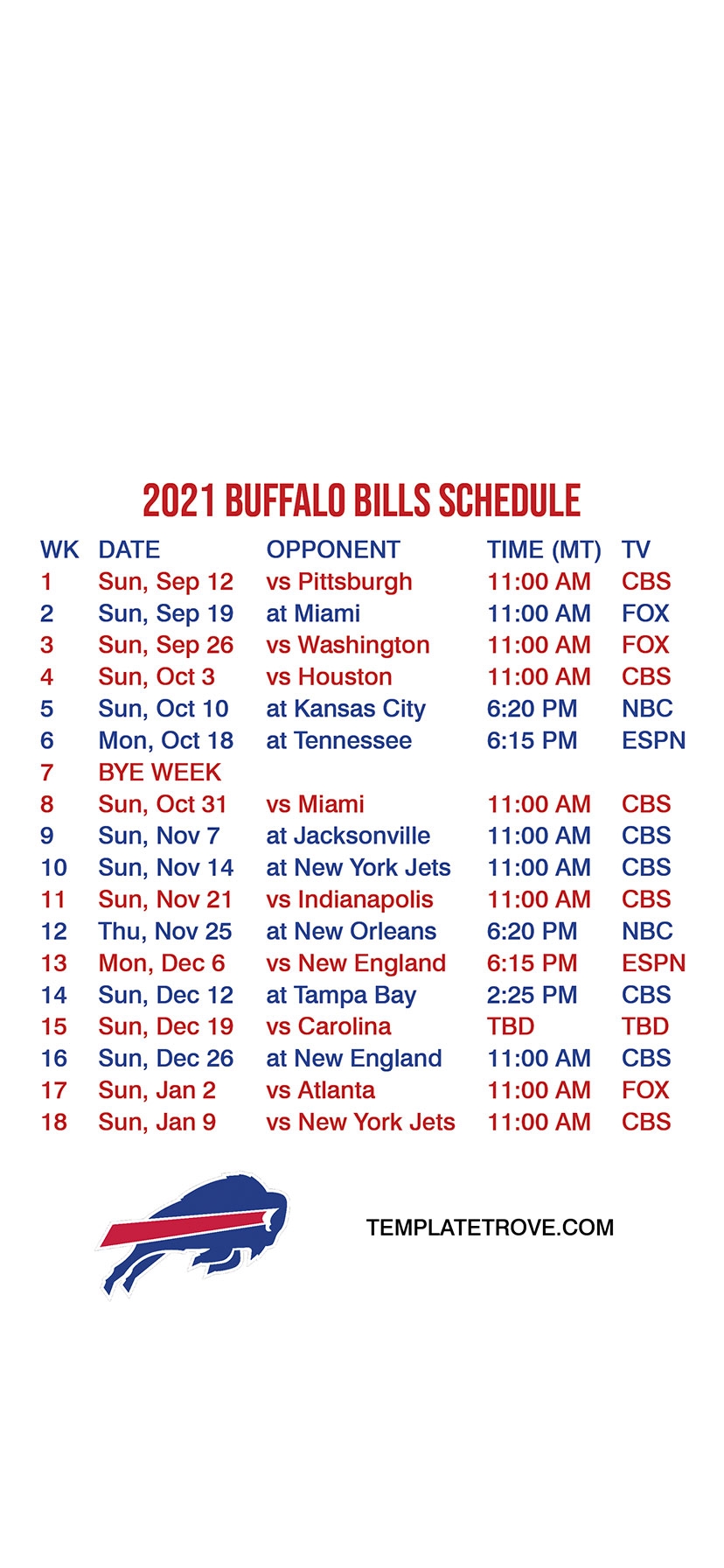 With this free printable Buffalo Bills schedule, you can easily plan your weekends around game days, invite friends and family over to watch the action, or even organize a tailgate party to support your team. It’s a great way to show your Bills pride and be the ultimate fan!