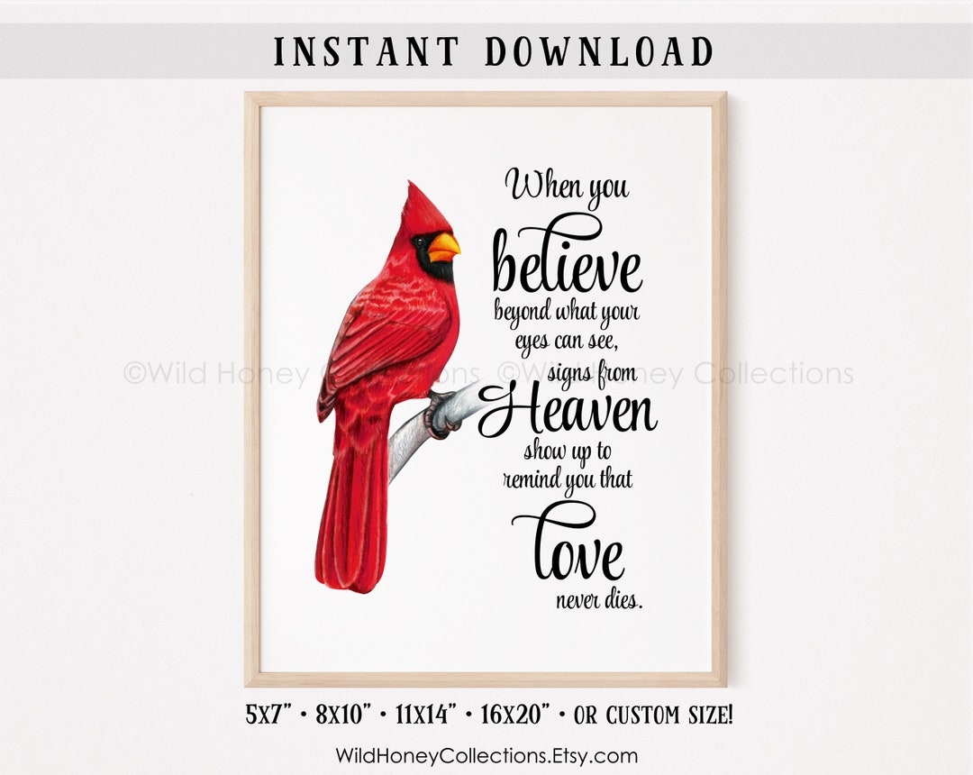 Cardinal Sign Printable Decor Sign From Heaven Love Never Dies Grief Mourning Cardinal Messenger Sign INSTANT DOWNLOAD Etsy