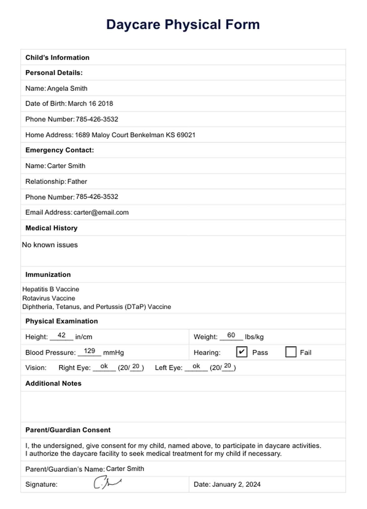 Daycare Physical Form U0026 Example Free PDF Download