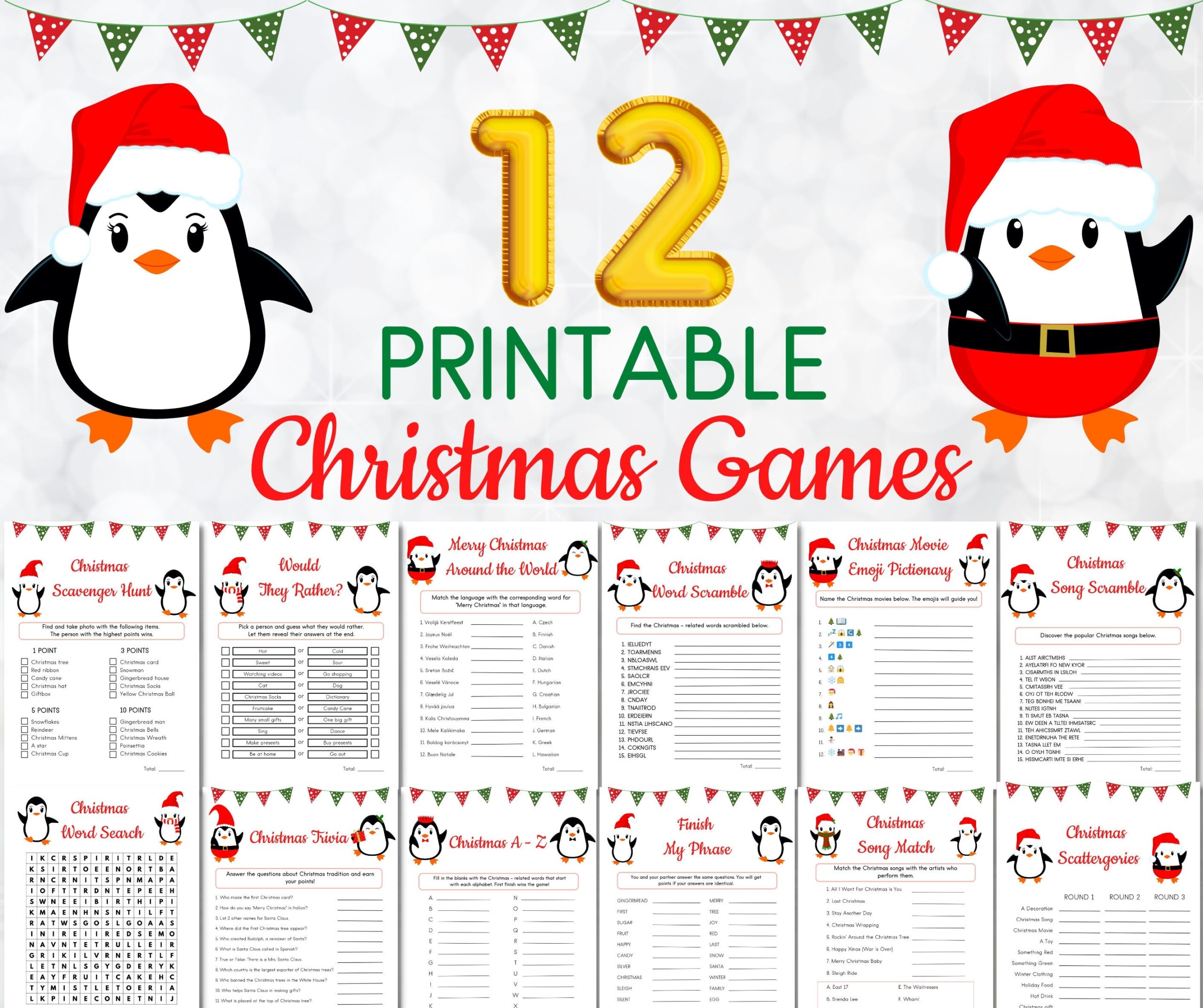 12 Printable Christmas Game Bundle Christmas Party Games For Kids Holiday Games Family Virtual Family Christmas Games Office Christmas Game Etsy