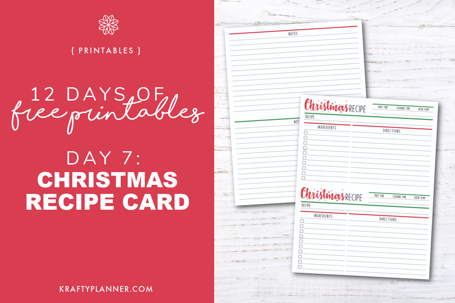 DAY 7 Christmas Recipe Cards 12 Days Of Free Christmas Printables Krafty Planner
