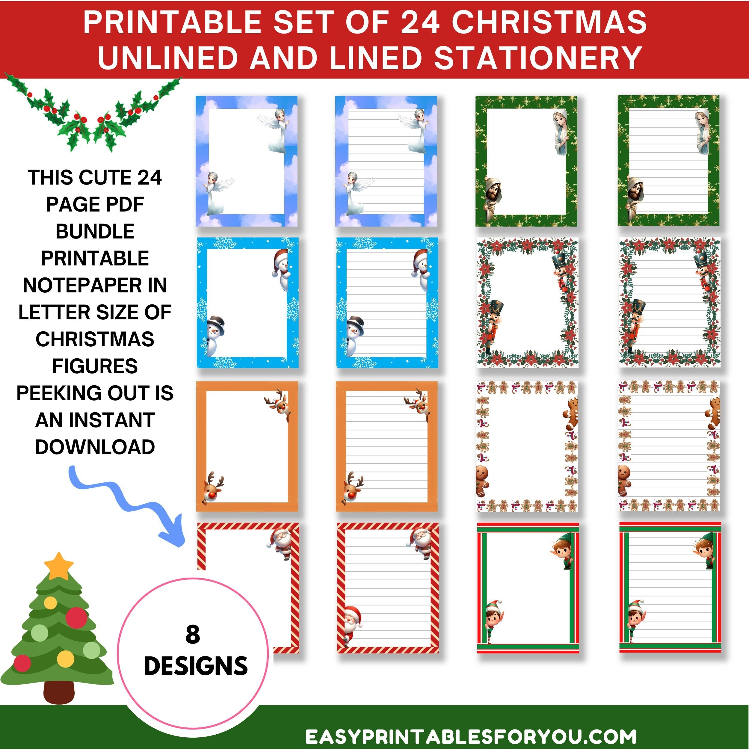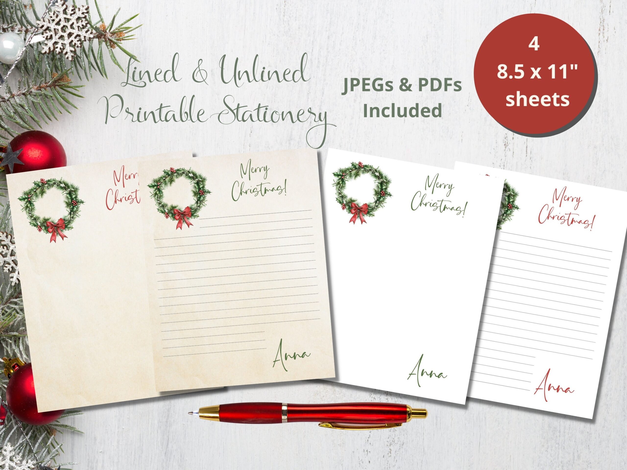 BEST VALUE 1 Printable Christmas Stationery Paper Instant Download Christmas Letter Writing Paper Lined U0026 Unlined Paper US Letter 8 5×11 Etsy Ireland