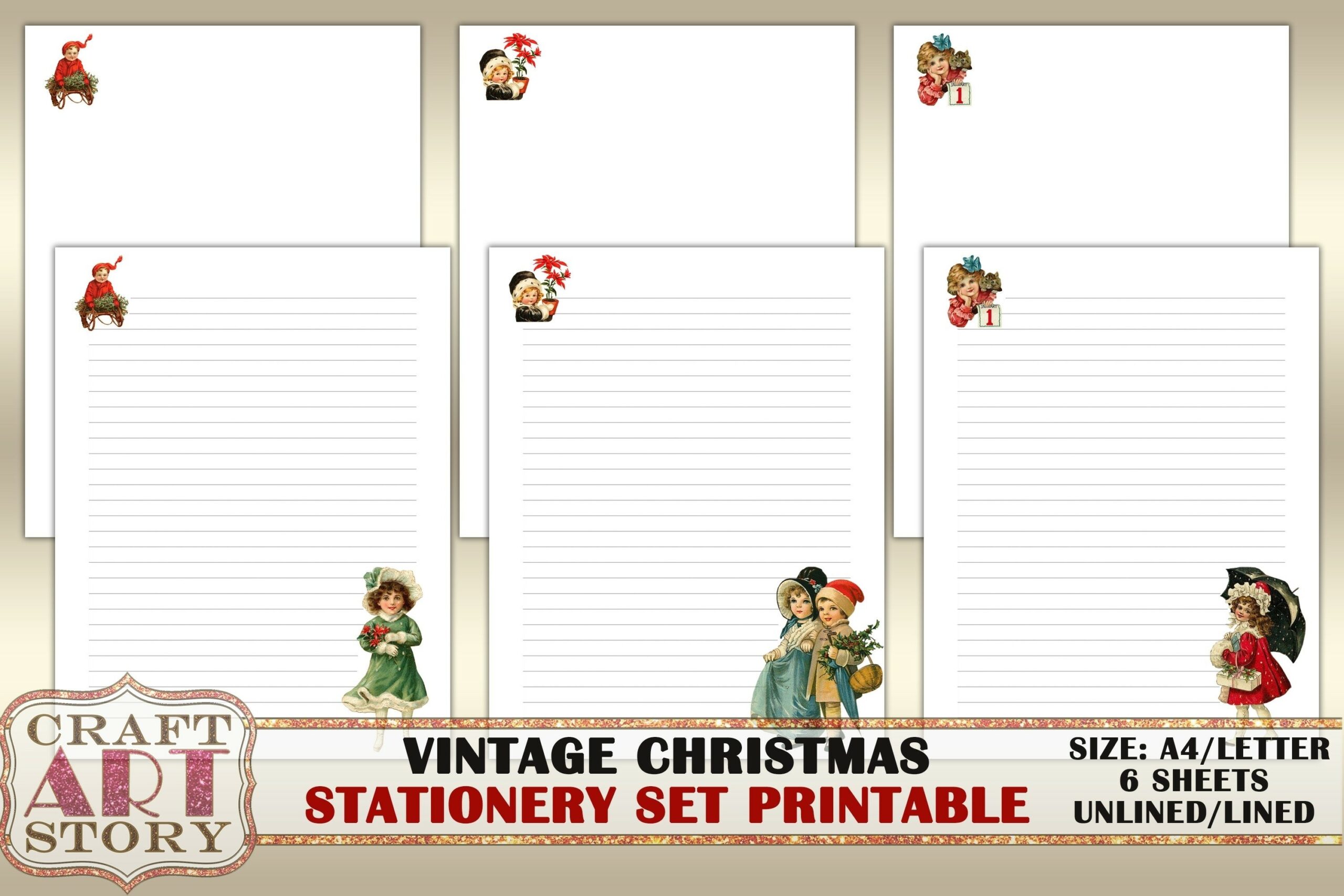 Vintage Christmas Stationary Set printable Letter