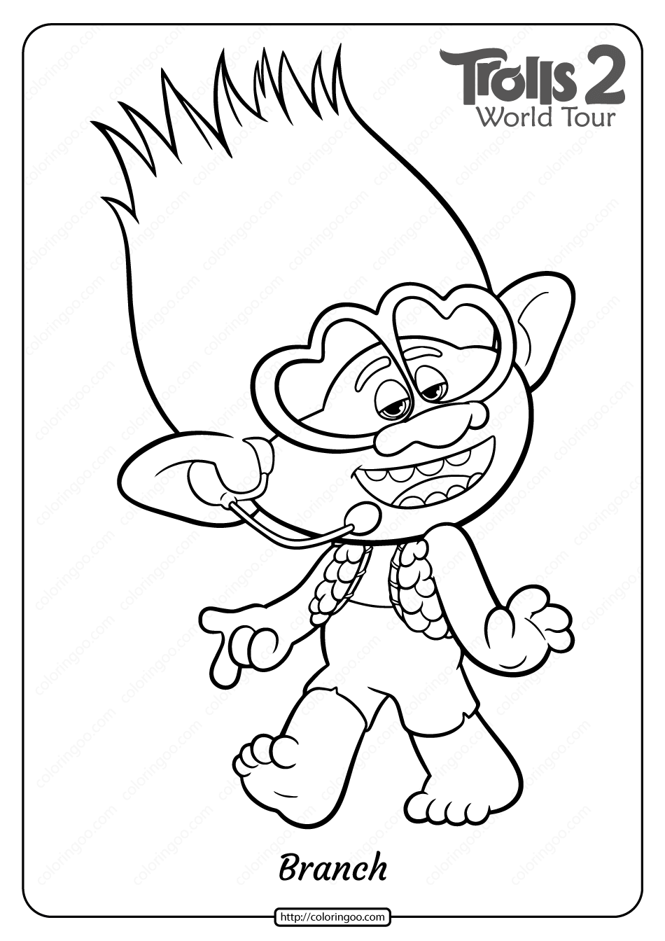 Free Printable Trolls 2 Branch Pdf Coloring Page