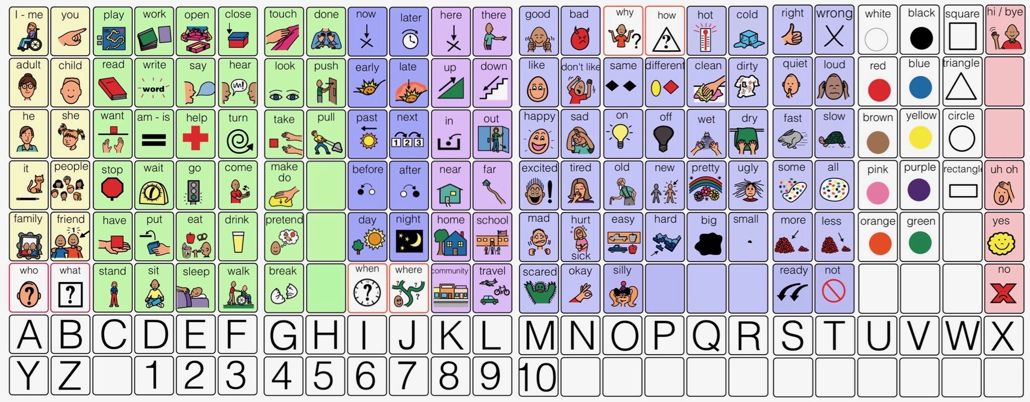Free Printable AAC Core Board With Alphabet Numbers Shapes U0026 Colors OMazing Kids AAC Consulting