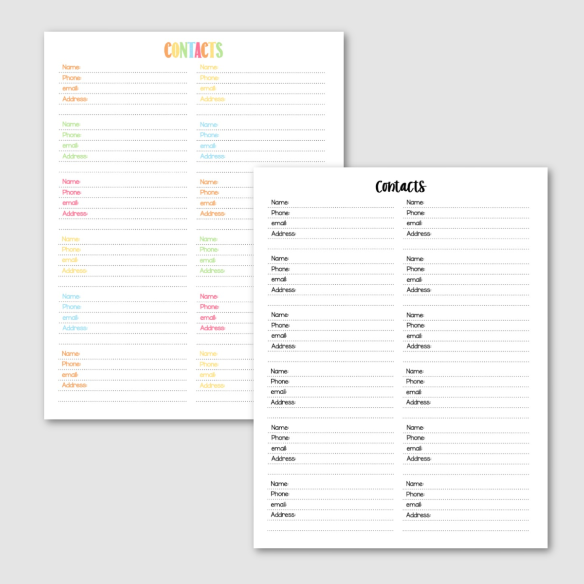 Simply download and print out our template, then fill in the blanks with your contacts’ information. You can keep it in a binder, on your fridge, or anywhere else that’s easily accessible. No more digging through drawers or searching through your phone for that one number you need.