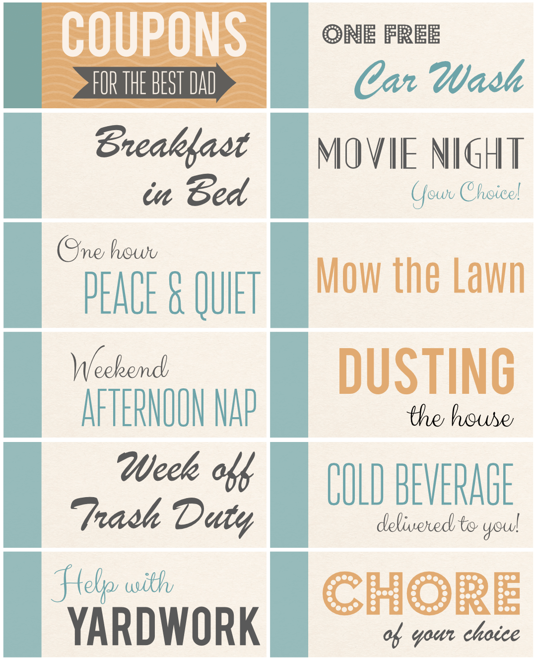 So why wait? Surprise your dad with these free printable coupons and make his day extra special. Whether it’s a small gesture or a grand adventure, these coupons are a thoughtful way to show your dad how much you care. Download, print, and watch your dad smile from ear to ear!