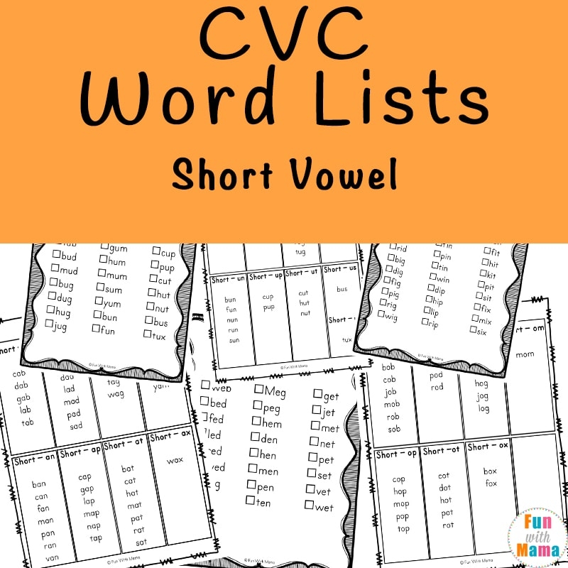 Word Families CVC Words Printable Worksheets CVC Word List Chart Phonics Flashcards Vowel Cards Sight Words Homeschool Kindergarten Etsy