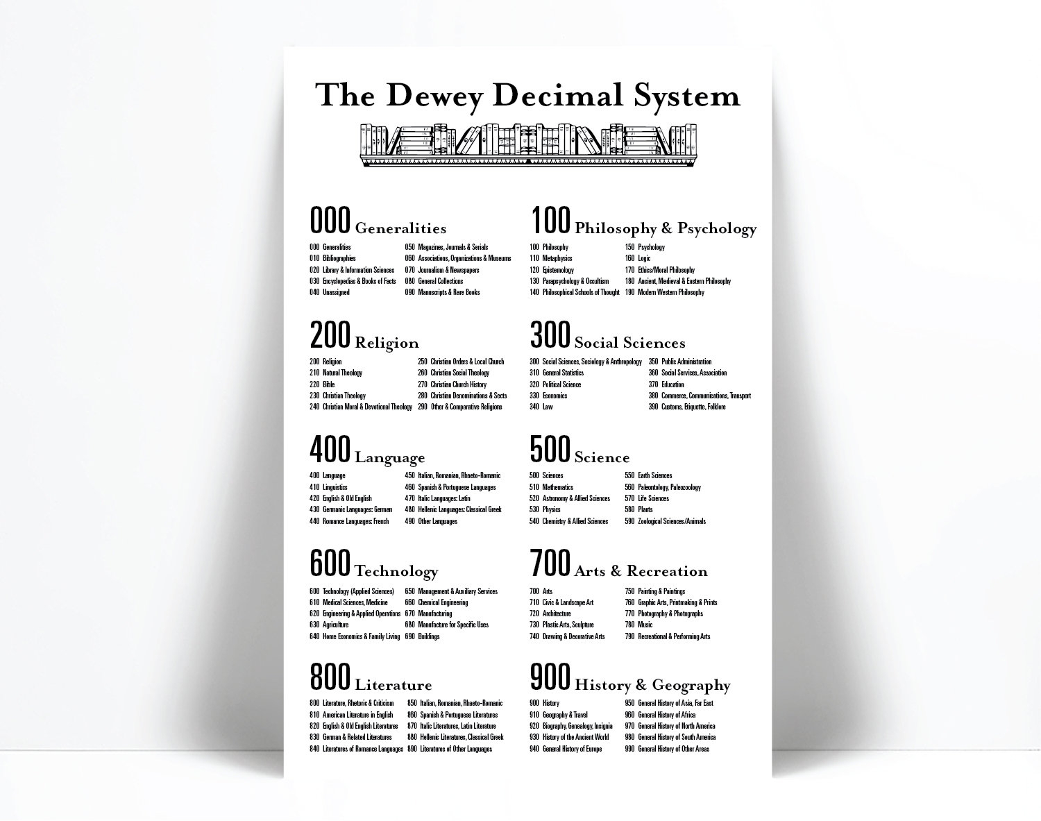 Dewey Decimal System Art Print Library Wall Art School Poster