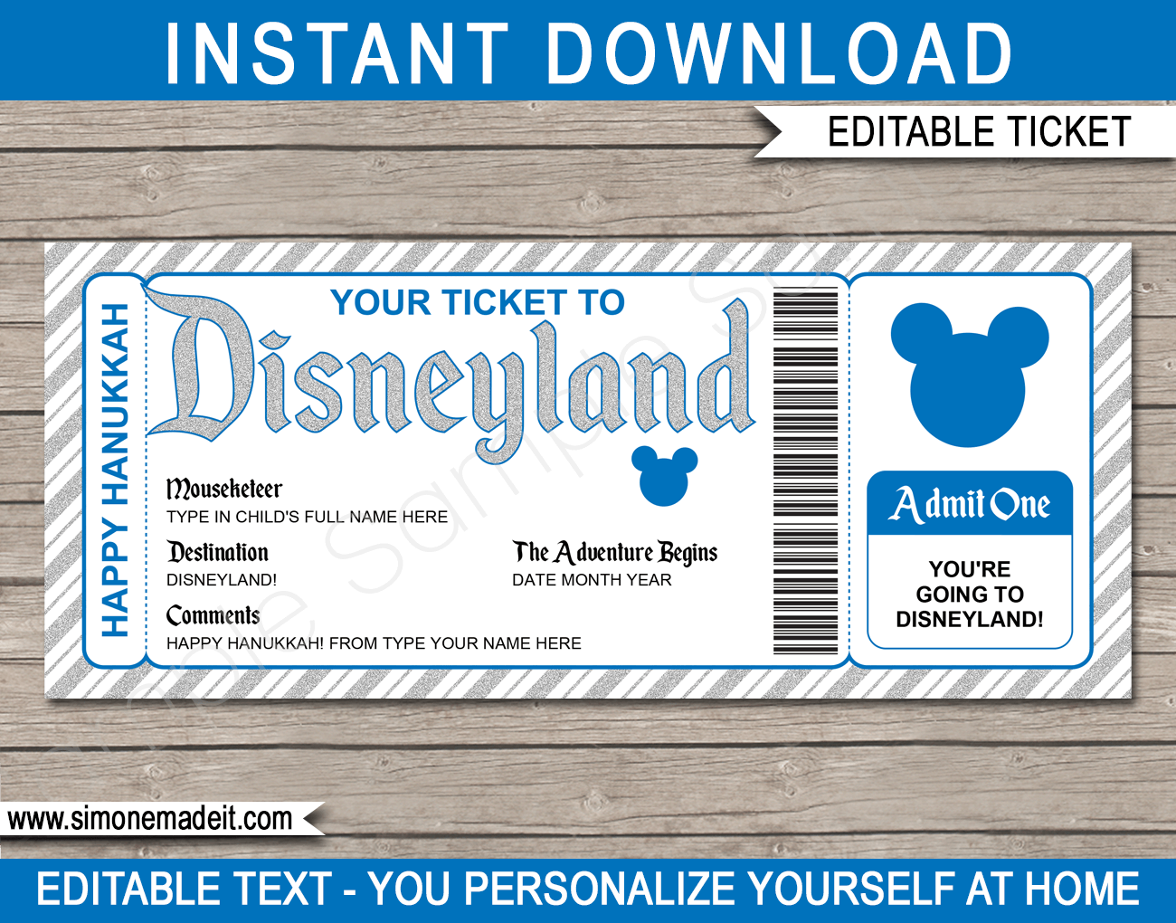 Printable Ticket To Disneyland Surprise Trip Birthday Gift Disneyland EDITABLE Text Mickey Mouse INSTANT DOWNLOAD