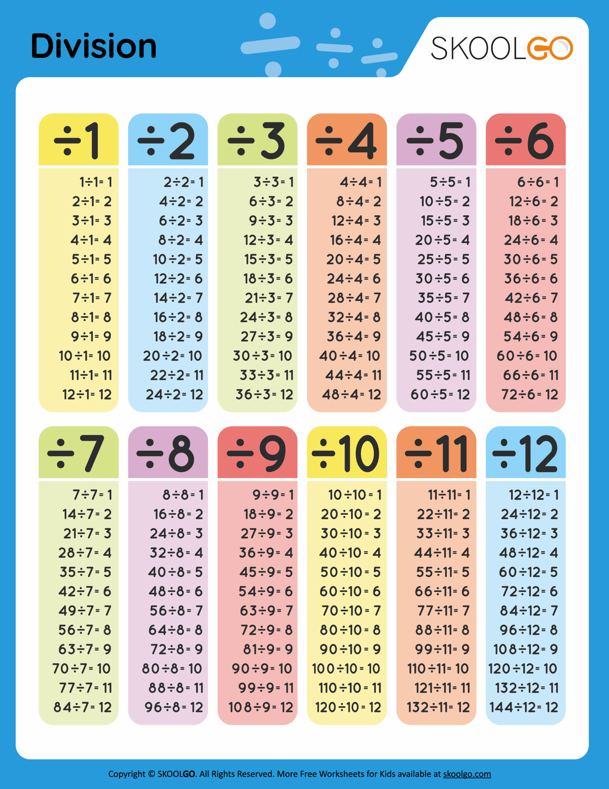 12 Division Charts For Making Maths Fun Kitty Baby Love