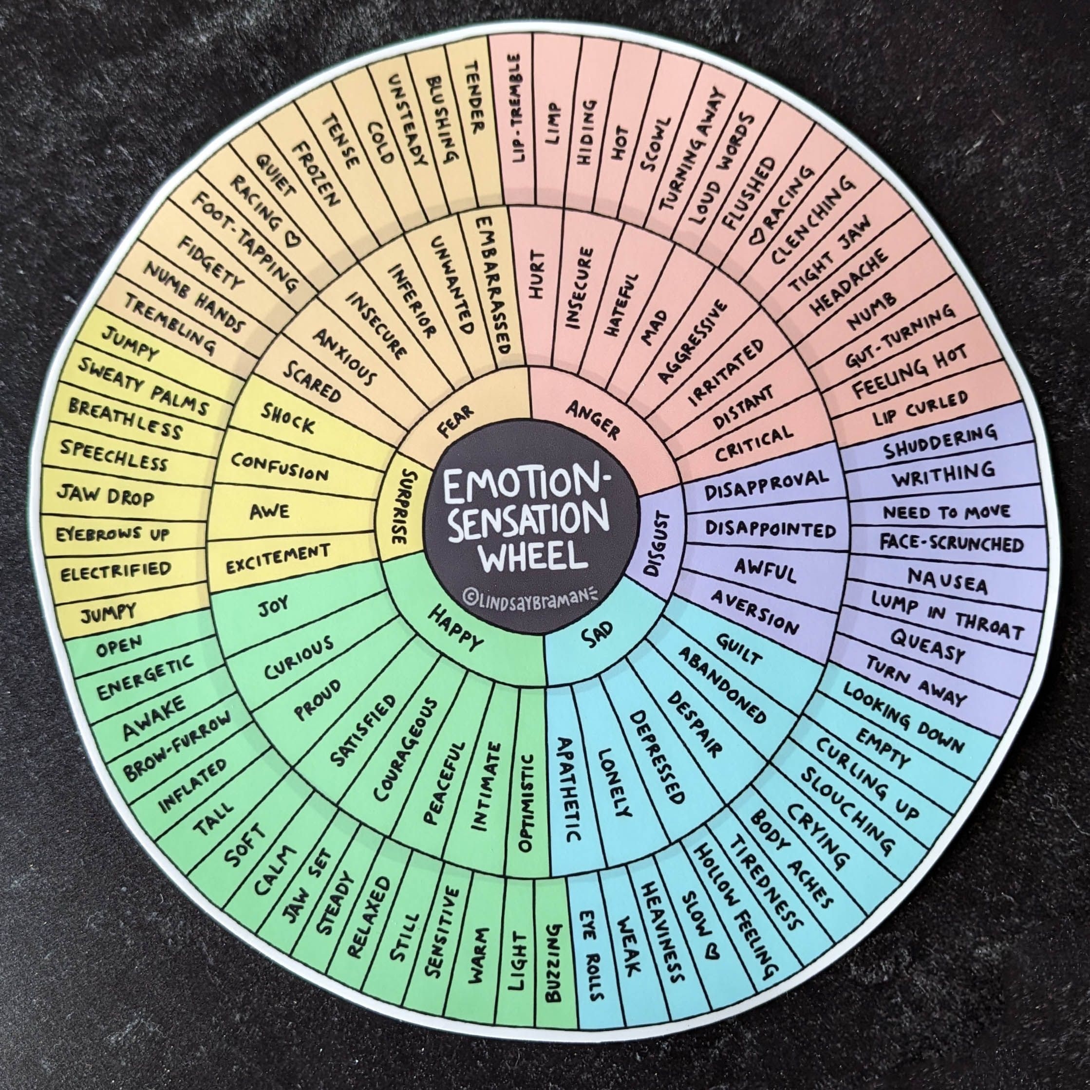 Emotion Sensation Feeling Wheel Handout By Lindsay Braman